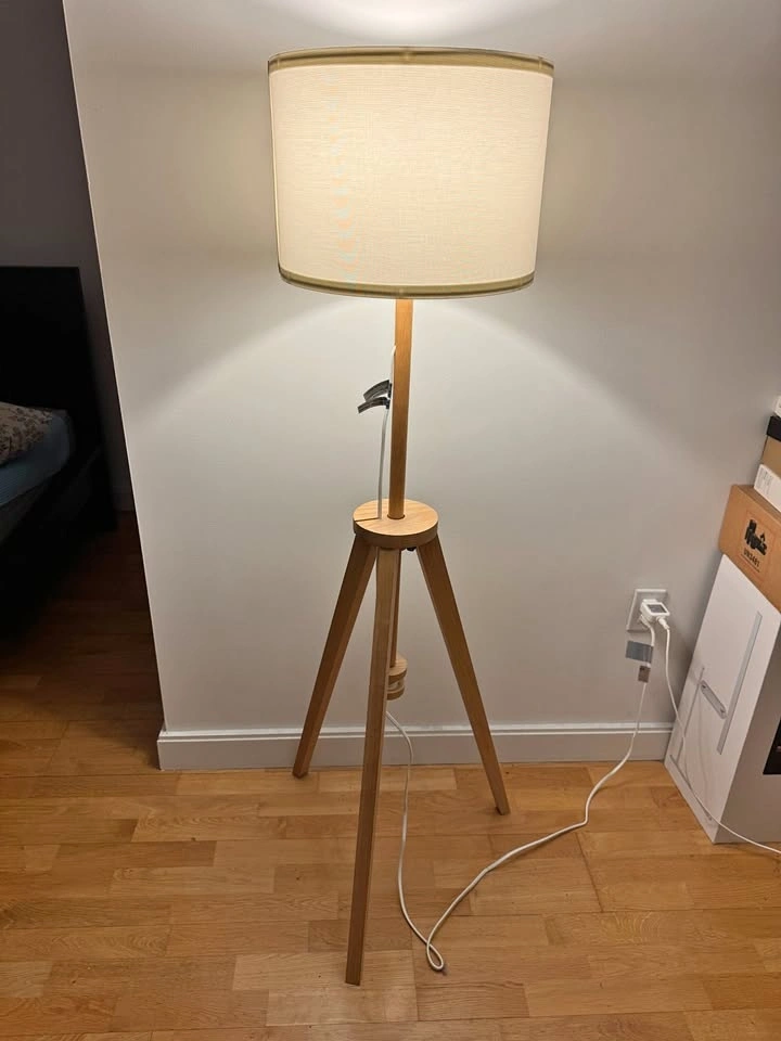 IKEA LAUTERS Floor Lamp - Solid Ash Wood Base, White Shade