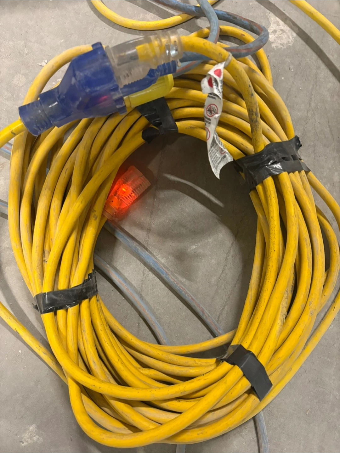This is a heavy-duty yellow extension cord. Was 100 feet