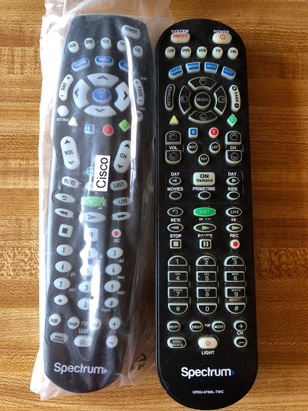 Includes one new Spectrum remote control still in its original packaging and one used Spectrum remote control. Both are black and designed for cable TV and on-demand services. These are essential for navigating your TV channels and streaming content.