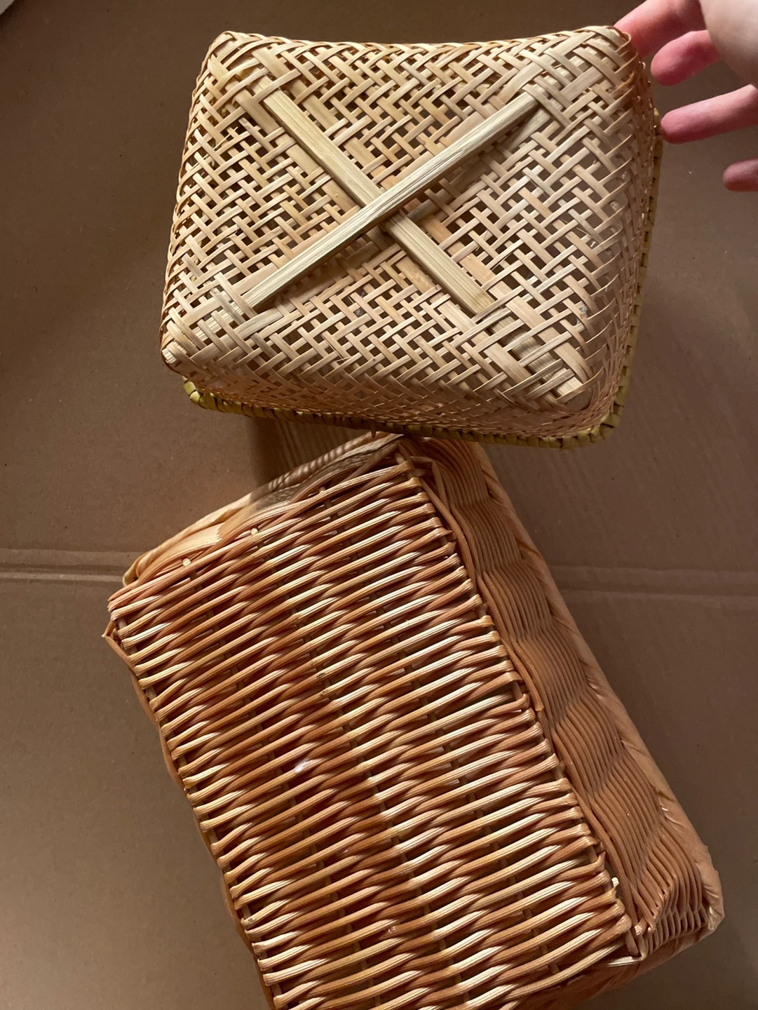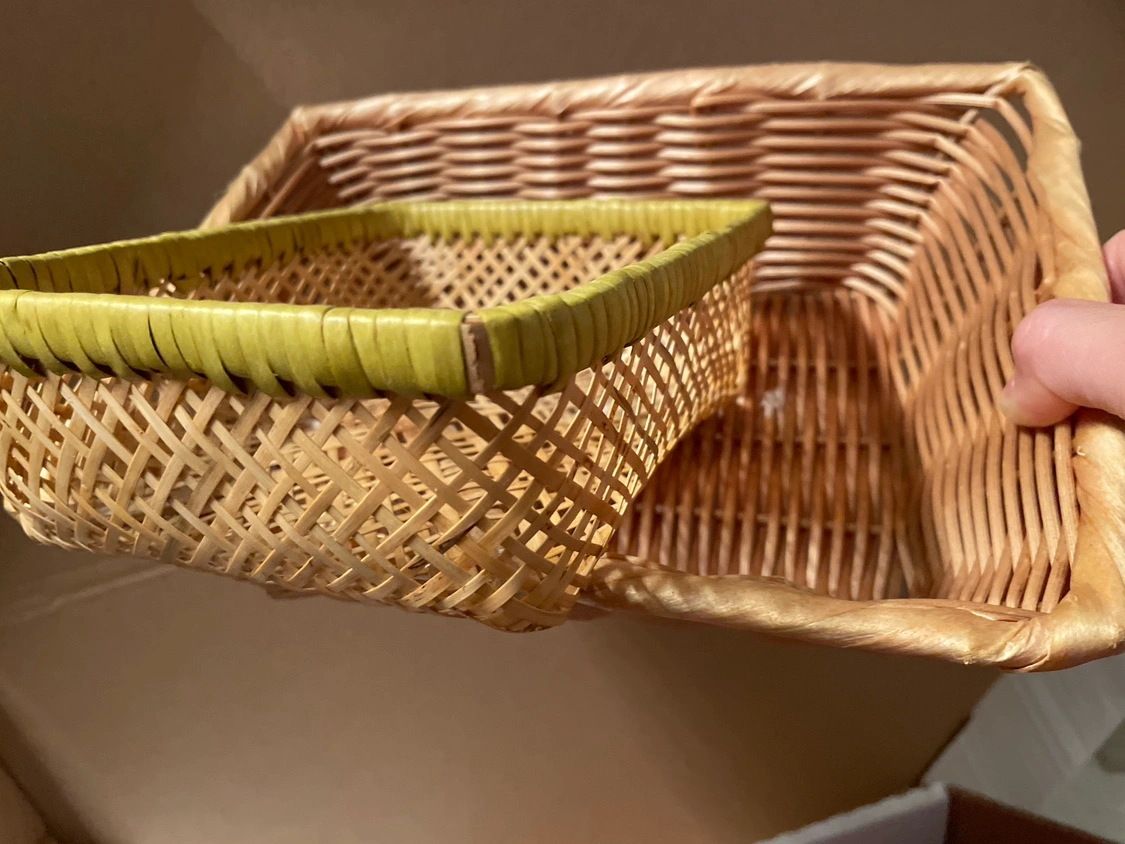 Two catch-all baskets (approx dimensions 5”x4” and 5”x6”) Larger one is sturdier than the smaller. Also see photo: glue residue not sticky on the larger size basket