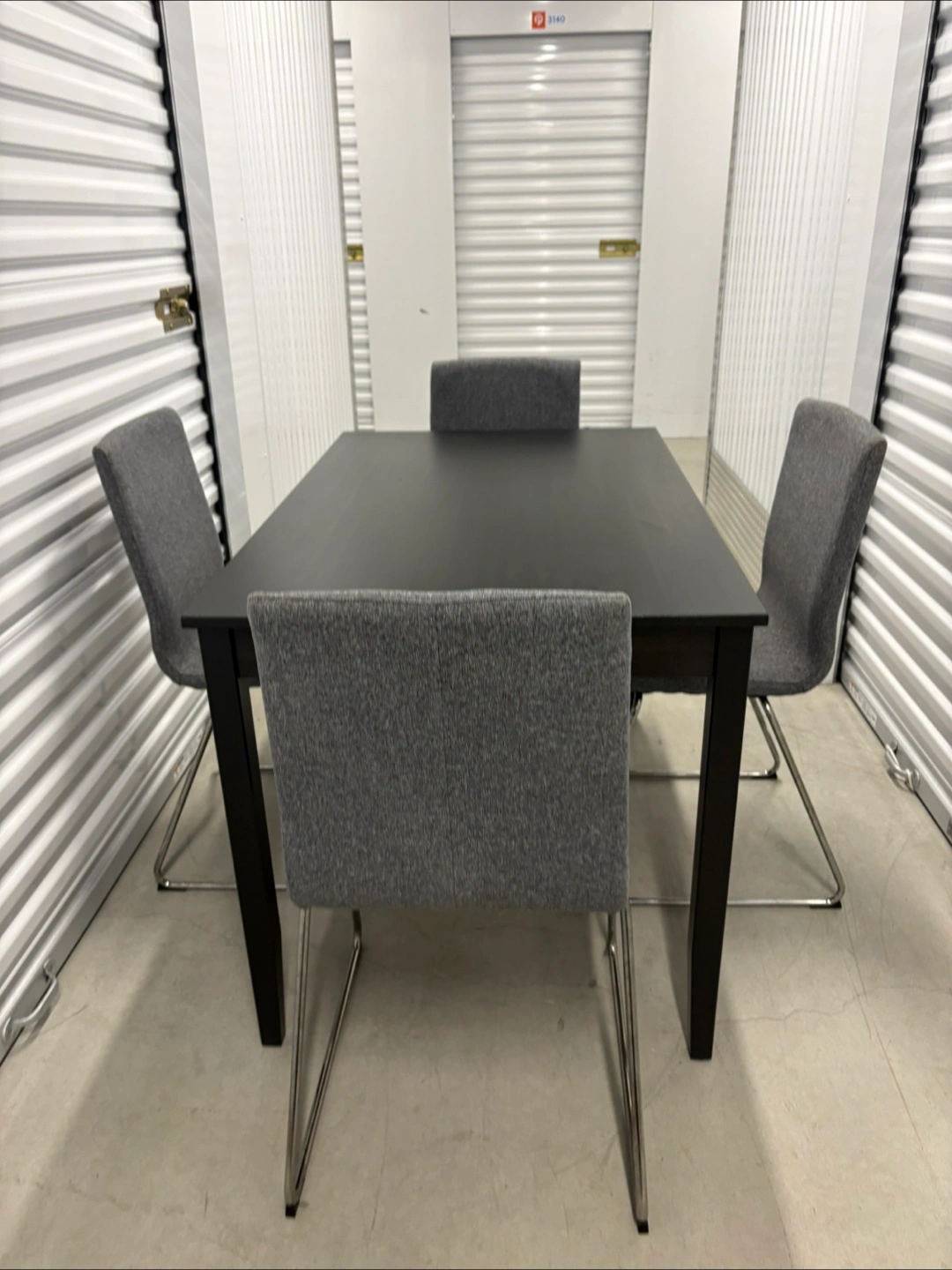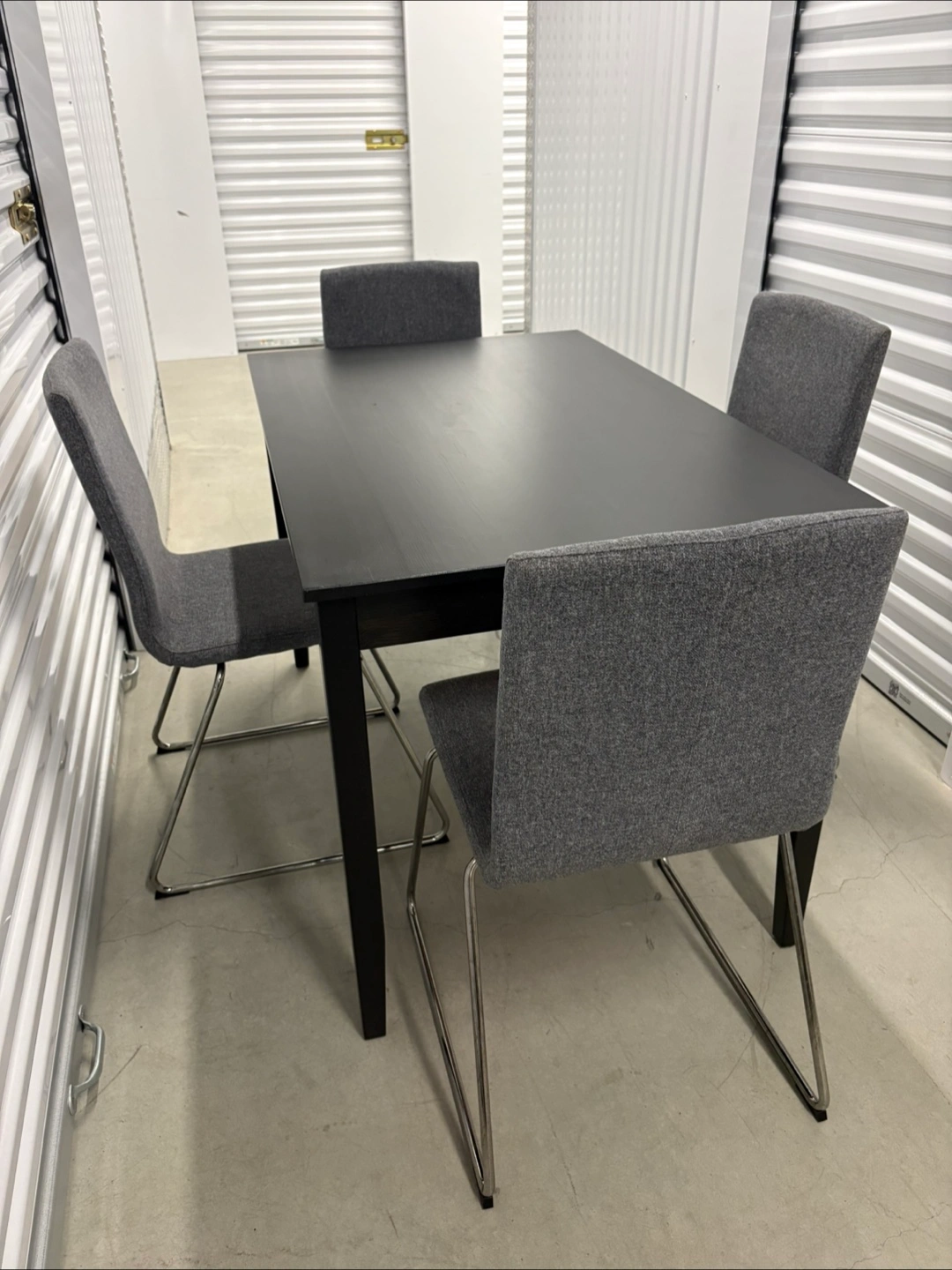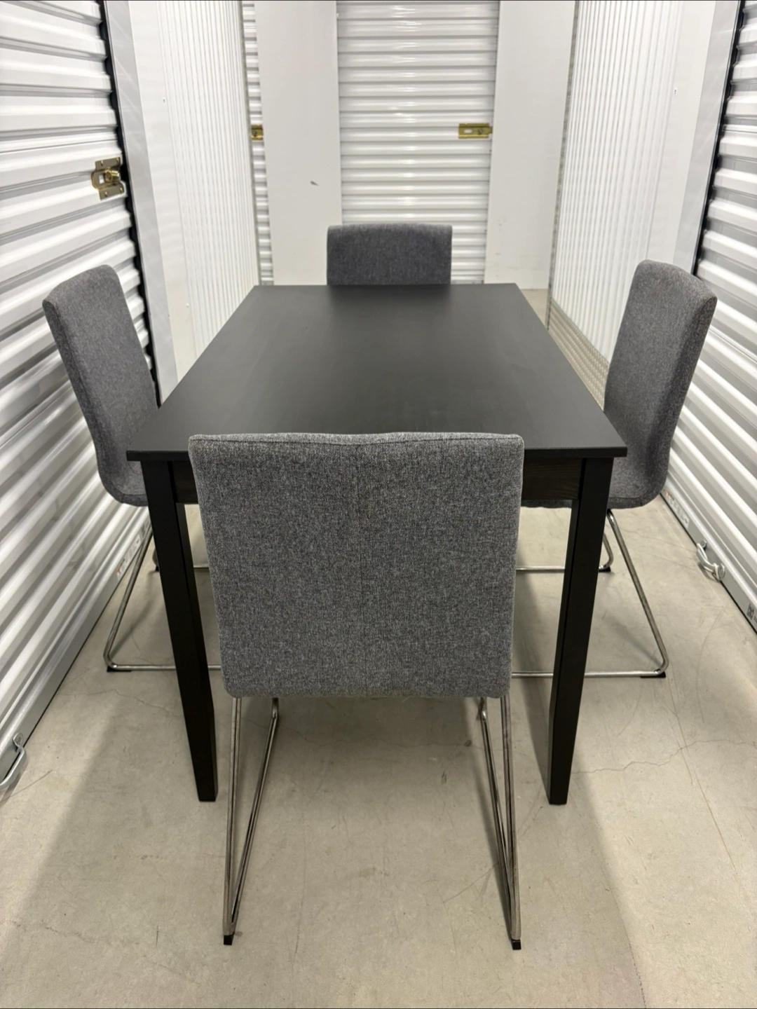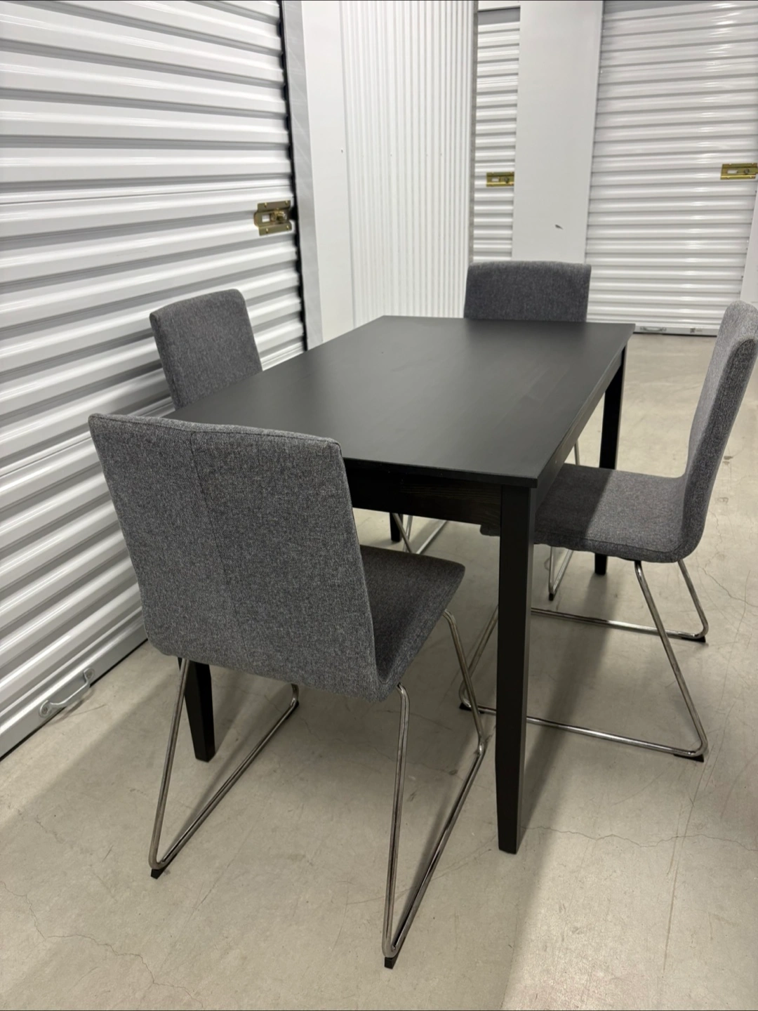 Ikea black/brown table and 4 Volfgang grey chairs (now called Lillanas) —all in good condition. Perfect size for smaller spaces.