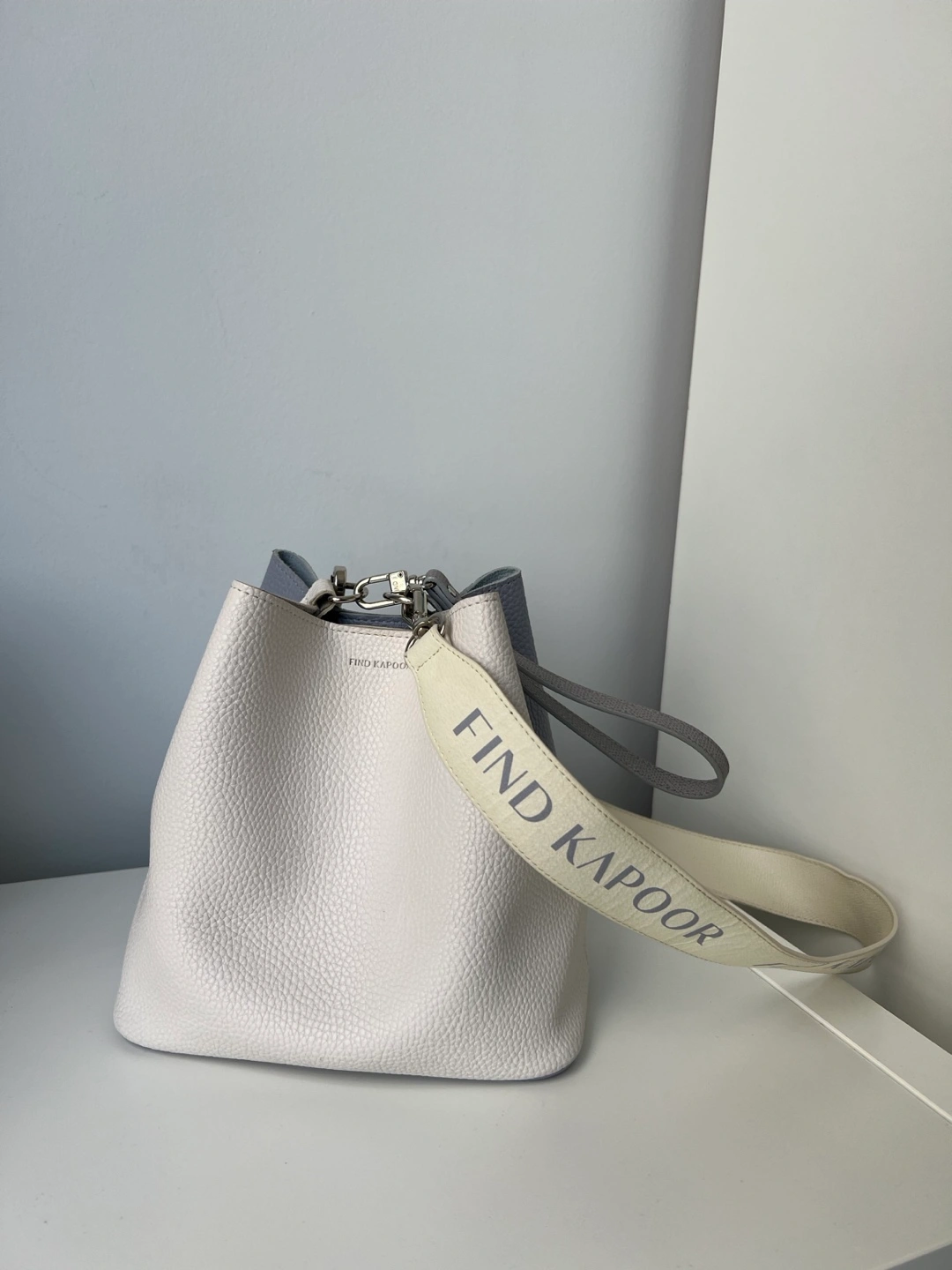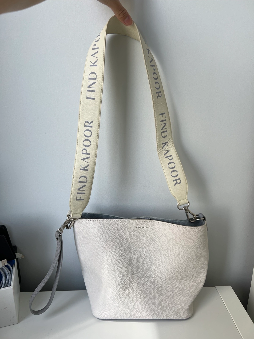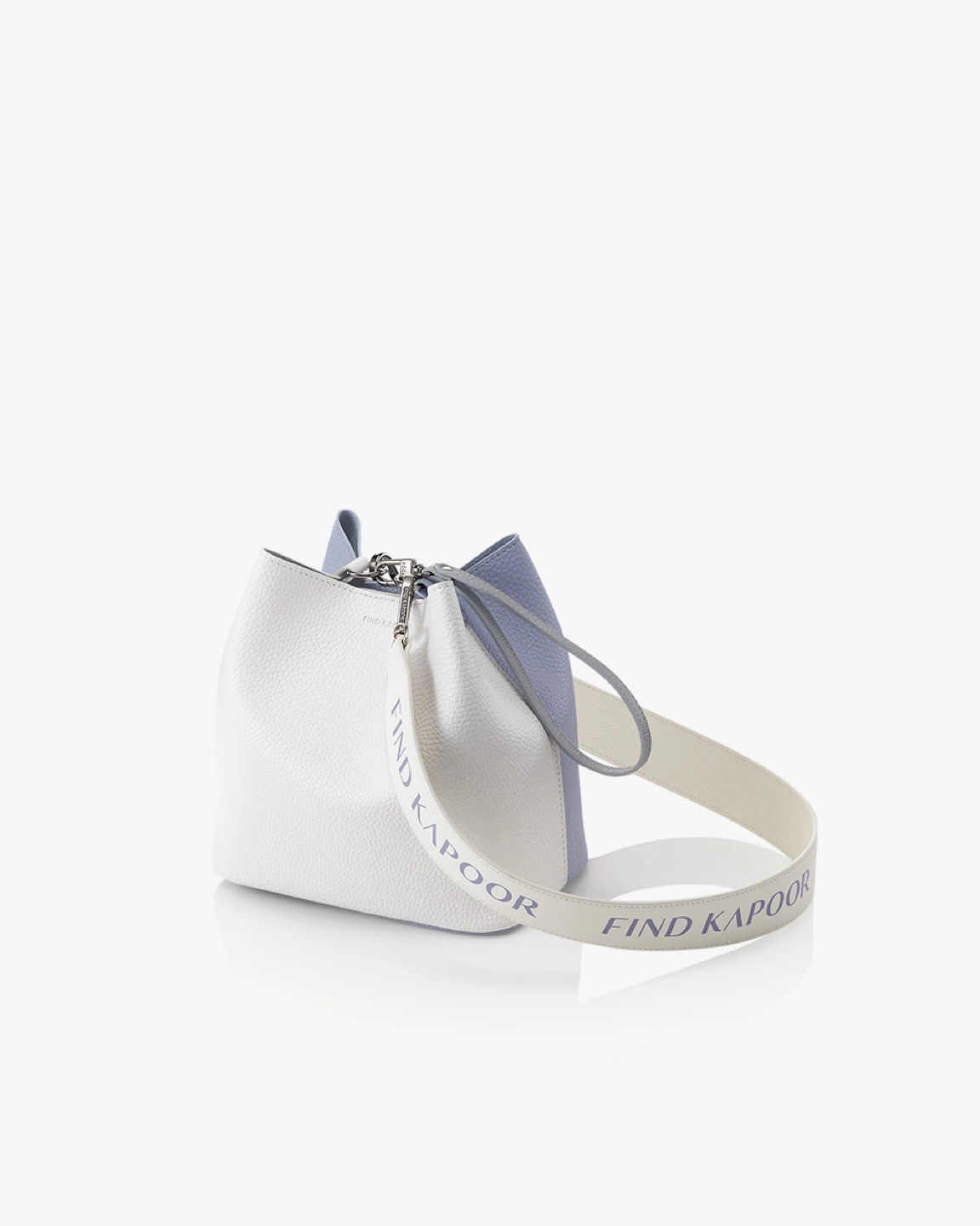 Selling a Find Kapoor Pingo bag in a stylish white and light blue colour block design, with an addition of logo lettering on the shoulder strap