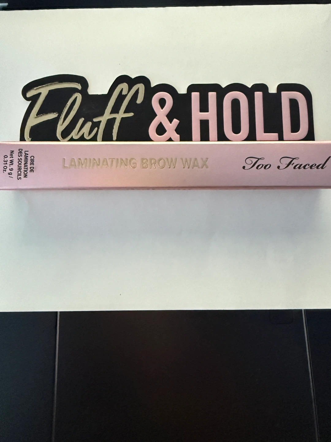 Selling a Too Faced Fluff & Hold Laminating Brow Wax in Crystal Clear. It's a great product for achieving laminated brows!