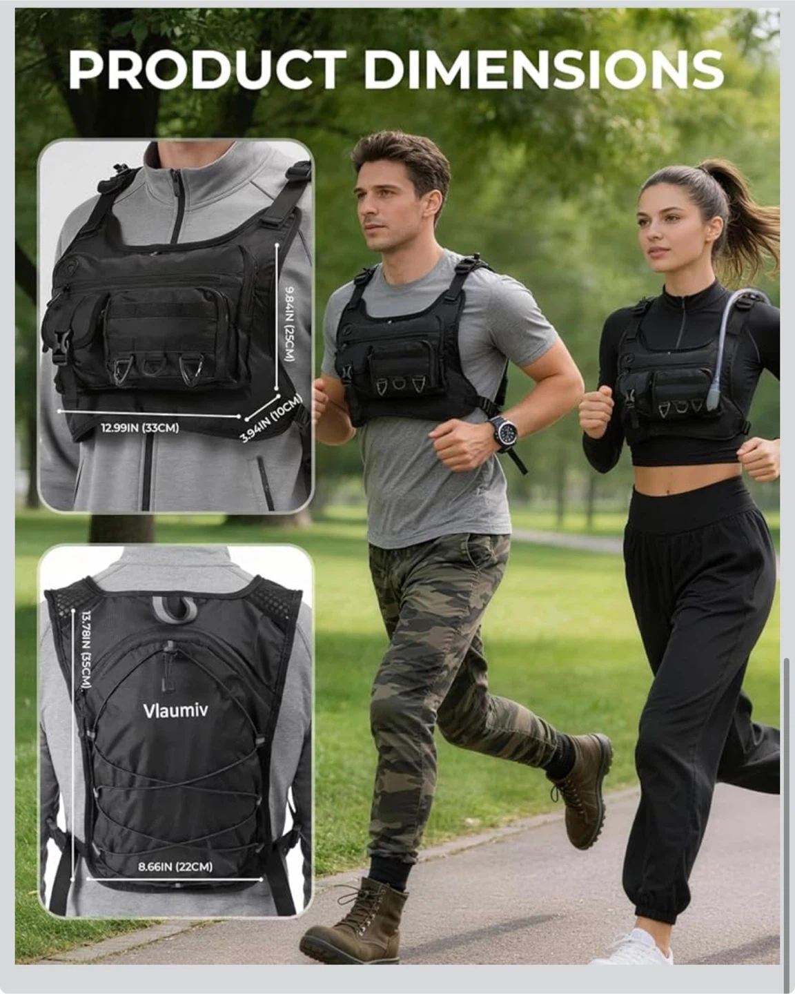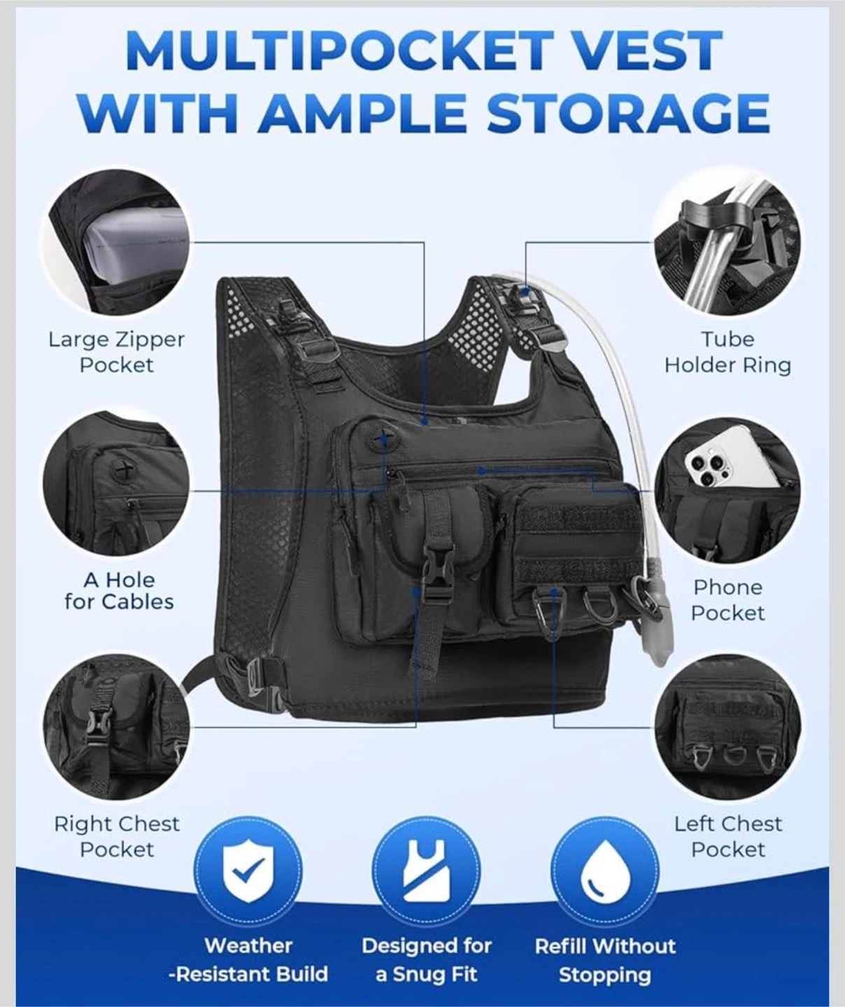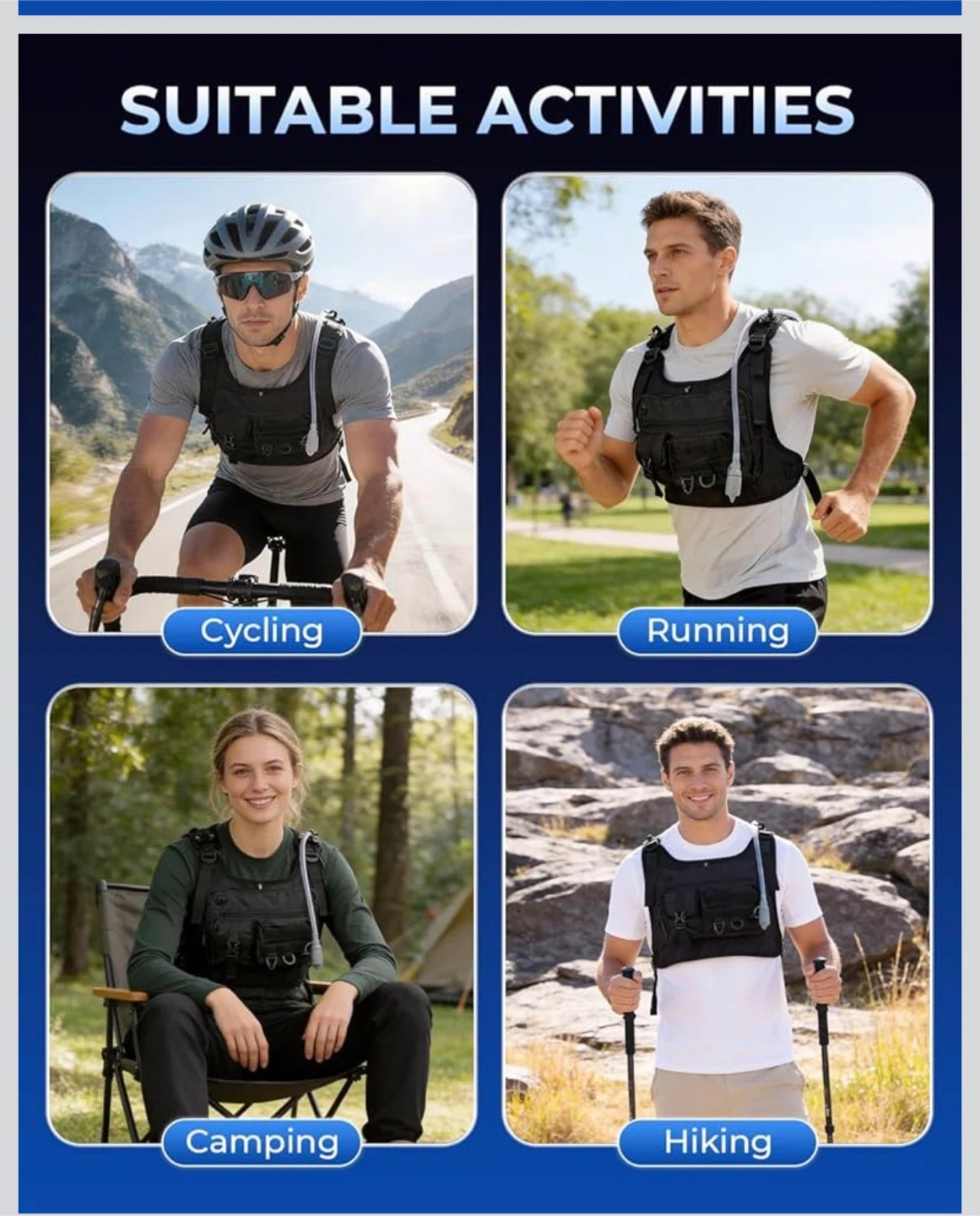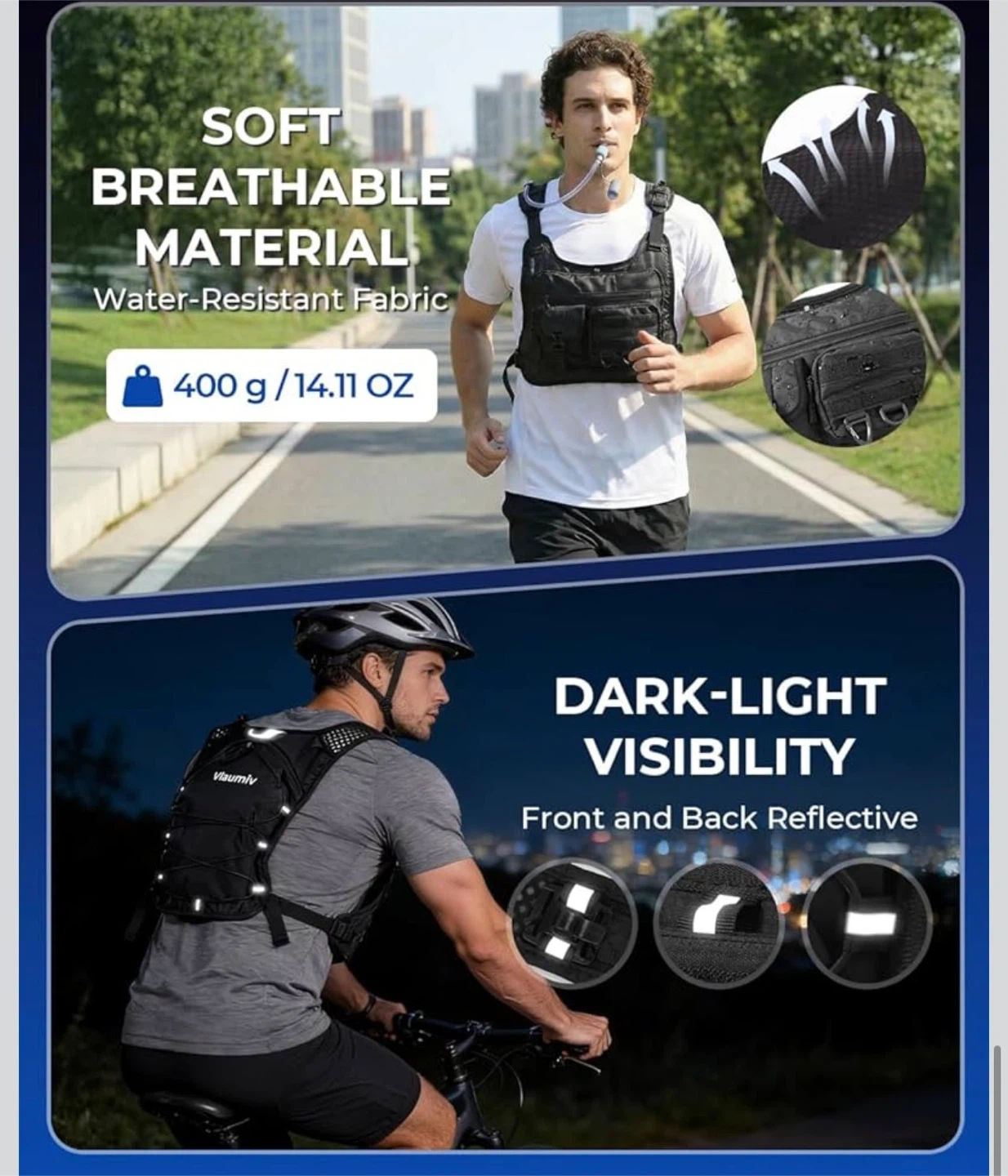 Running Vest with 2L Water Bladder, Hydration Backpack with Adjustable Straps, Lightweught & Breathable Design, Reflective Chest Pack for Men & Women, Ideal for Running and Cycling
