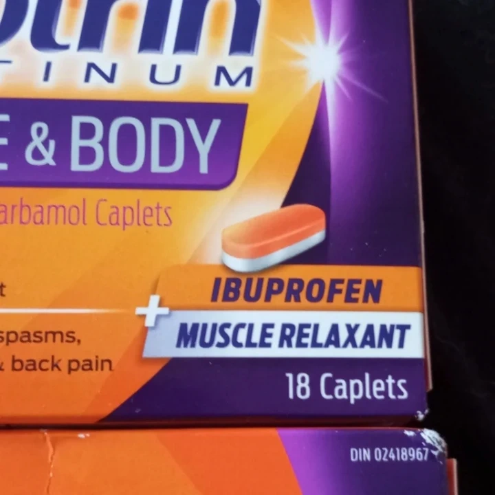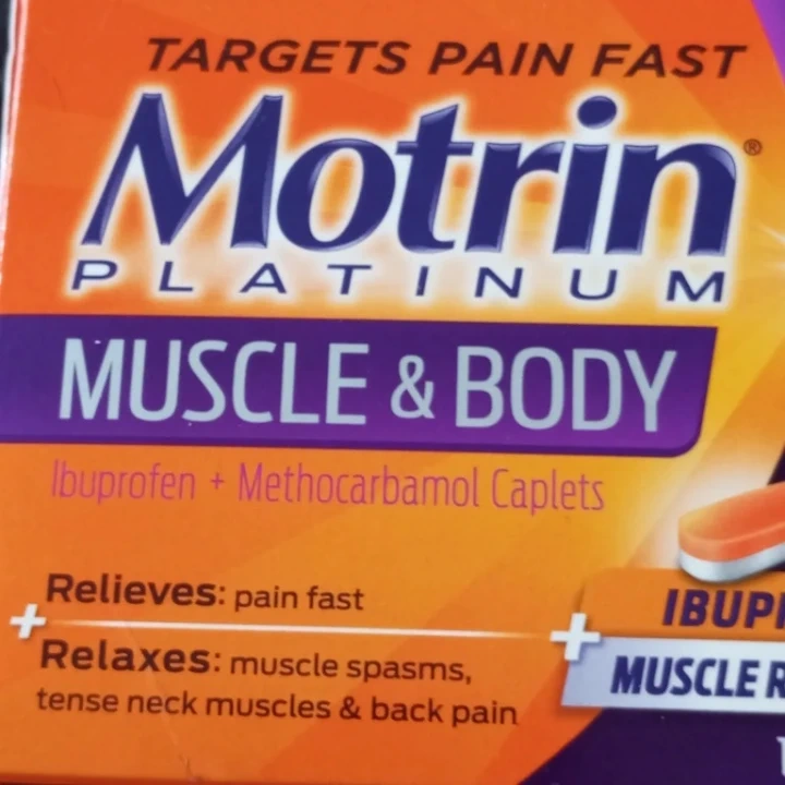 Motrin Platinum Muscle & Body Ibuprofen + Methocarbamol Caplets. Relieves pain fast and relaxes muscle spasms. It's for tense neck muscles and back pain. Expires 2026/01.