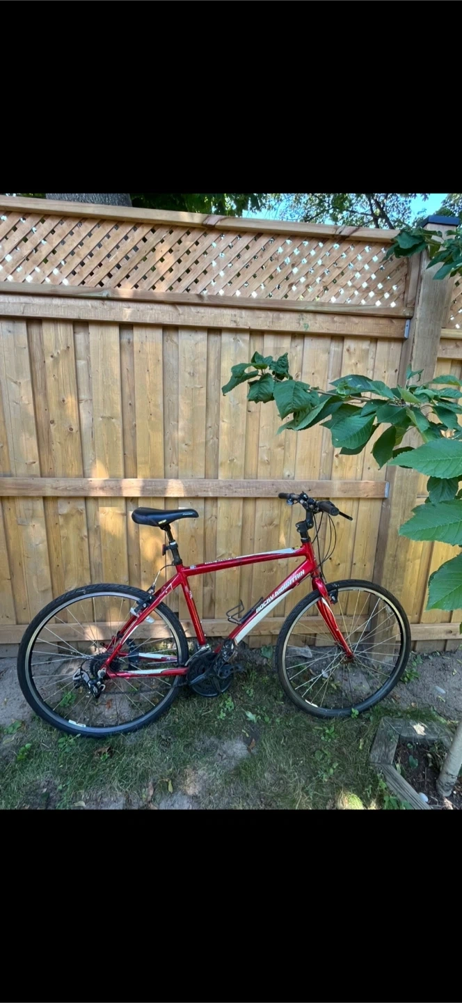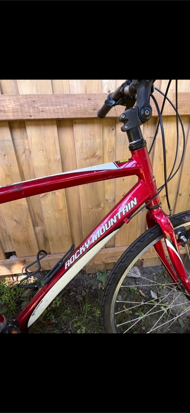 Selling a Rocky Mountain Red Hybrid bicycle in red and white. It's in excellent condition and ready for a new owner to love the ride! Perfect for getting around town or enjoying a leisurely bike ride on the trails.