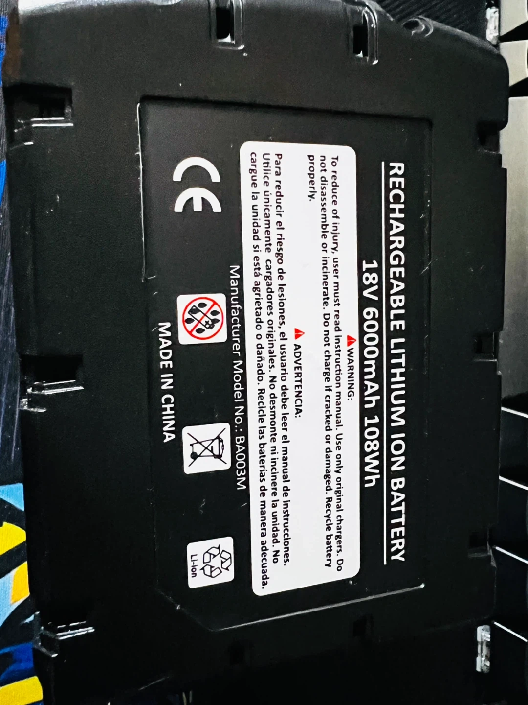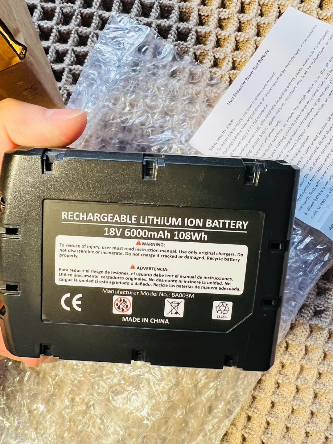 This is a rechargeable 18V lithium-ion battery with a 6.0Ah output. It's compatible with various power tools. This battery is designed for high performance and extended run time.