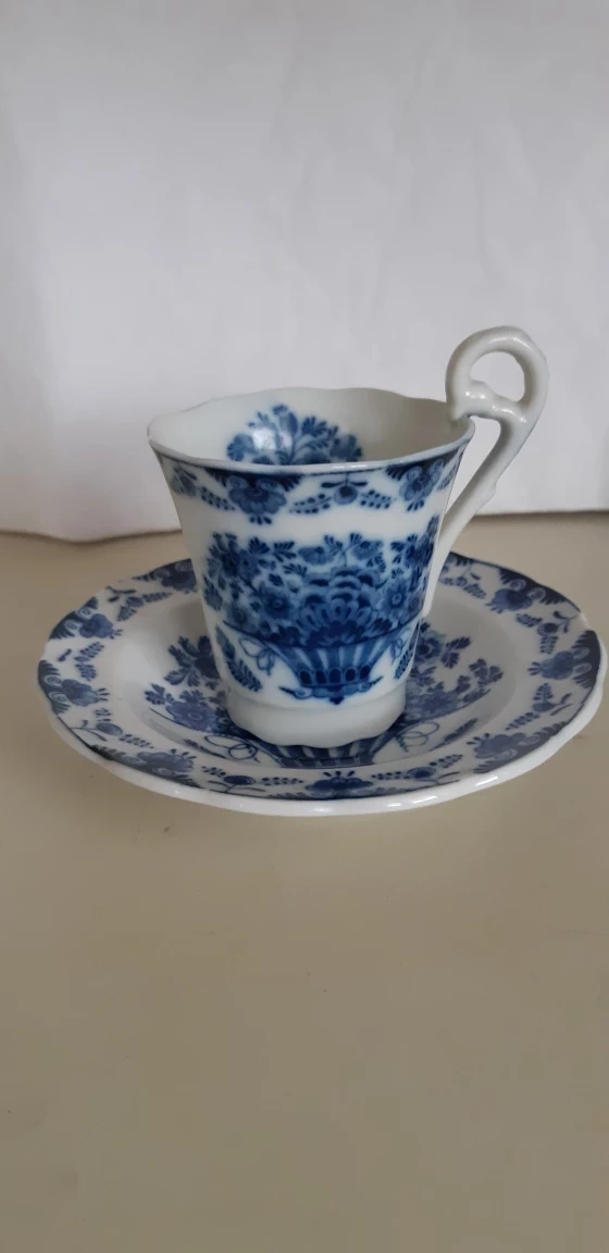 Charming miniature teacup and saucer set, blue and white porcelain with floral design, perfect for collectors or tea lovers!