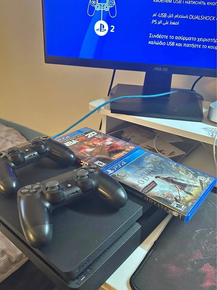PS4 1TB Slim Model, 2 Controllers, 2 Games