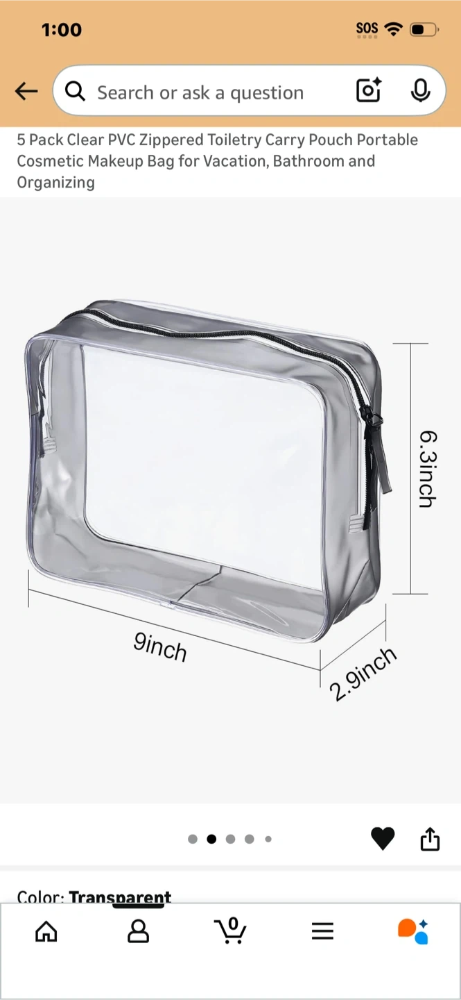 Clear, PVC, Zippered Toiletry Bags.