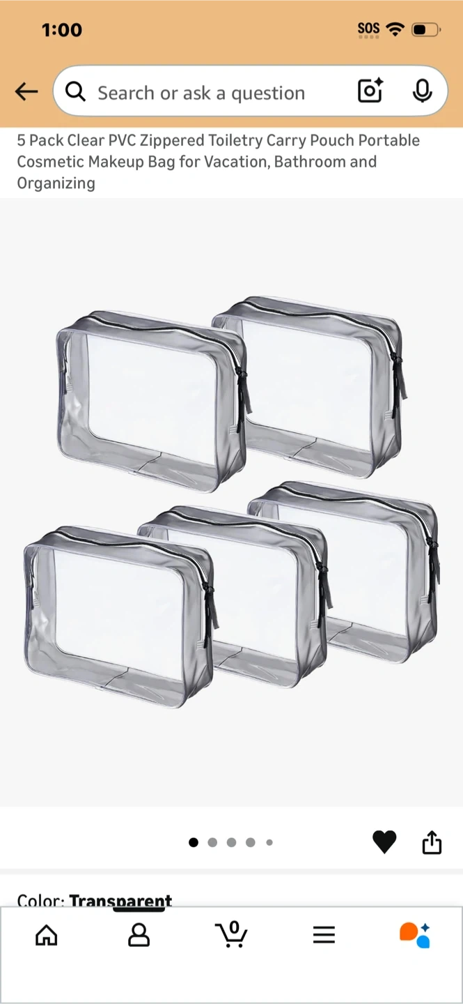 Lot of 5 PVC Zippered Toiletry Bags