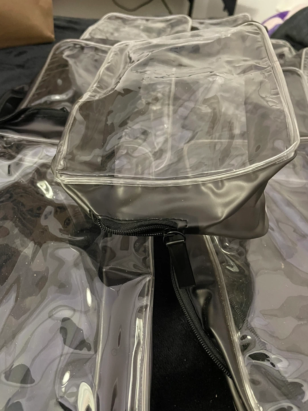 Large Pouches for Cosmetics or whatever it works best for. Organizing, storing, easy to see your things and easy to put away.