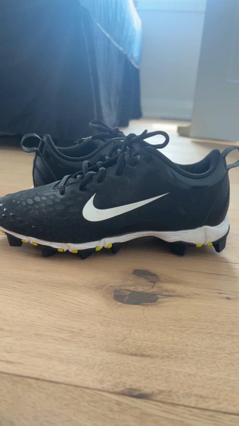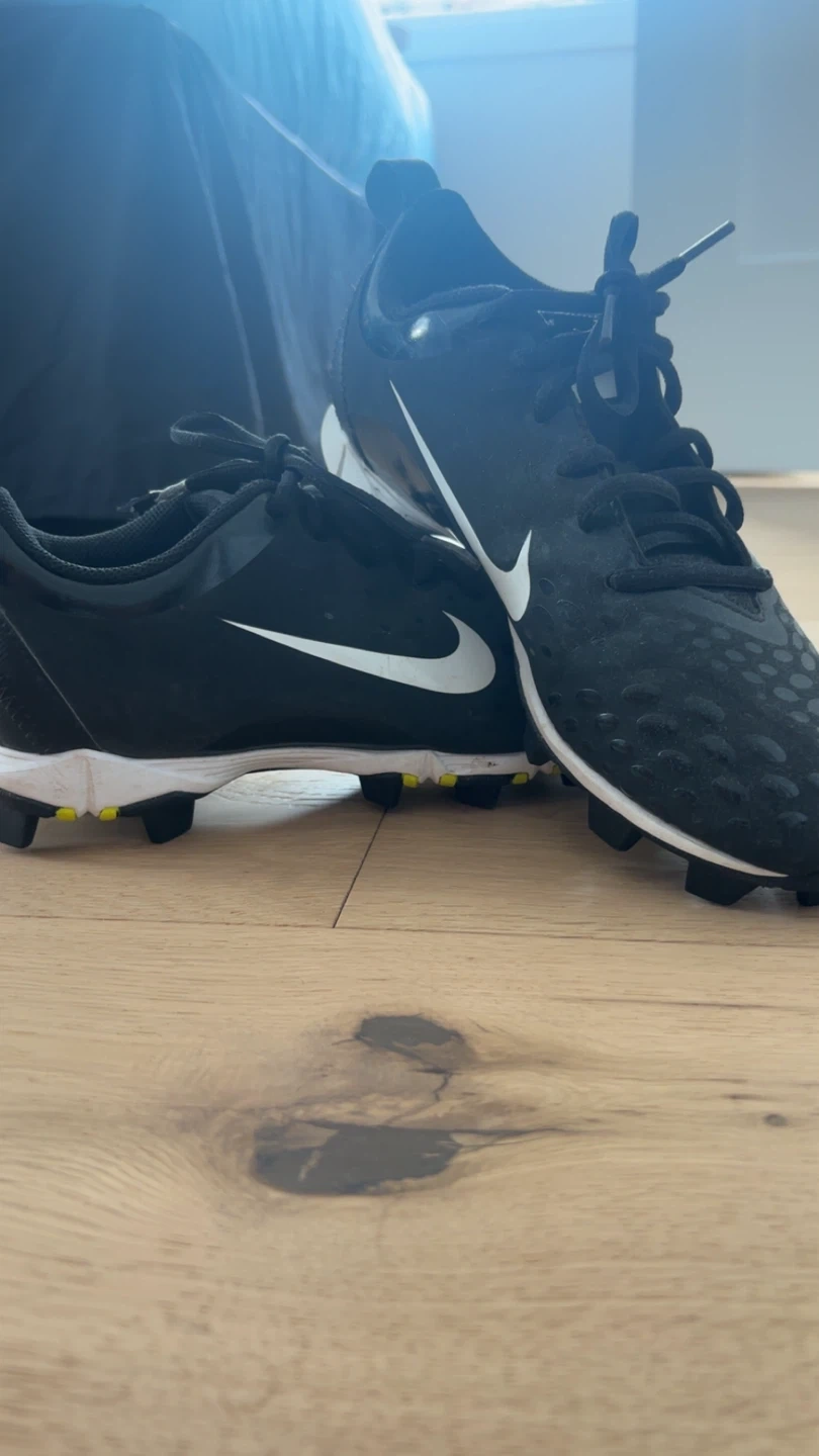These are black Nike football cleats. Men's size 7.5. They're built for the field. These cleats offer good traction for game day! Used three times. Felt kinda small after