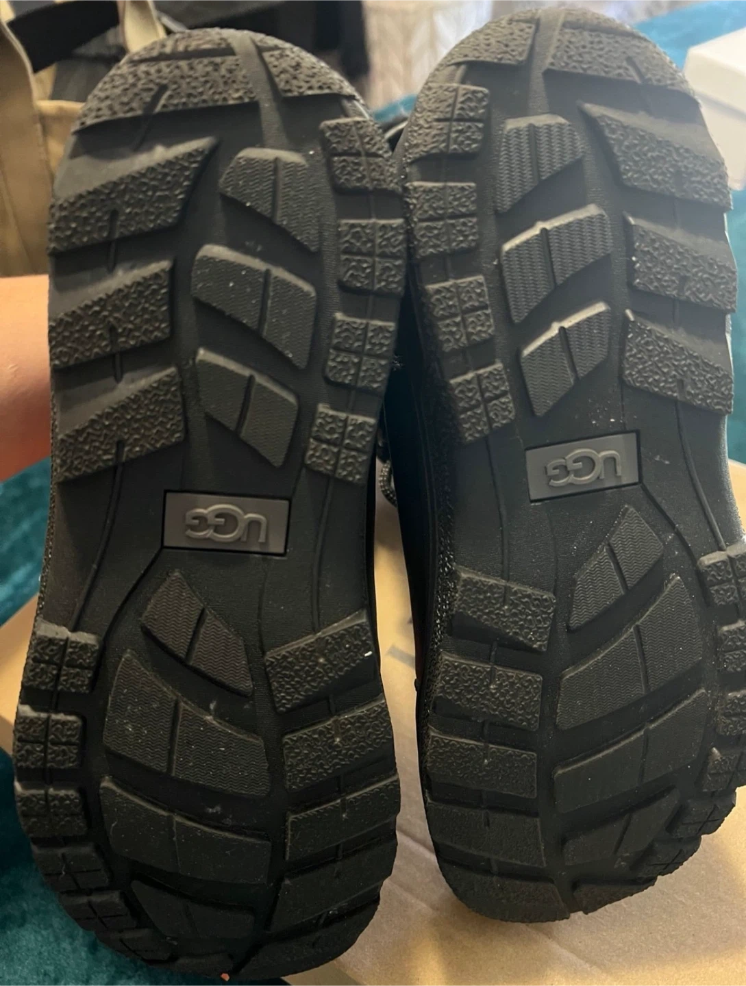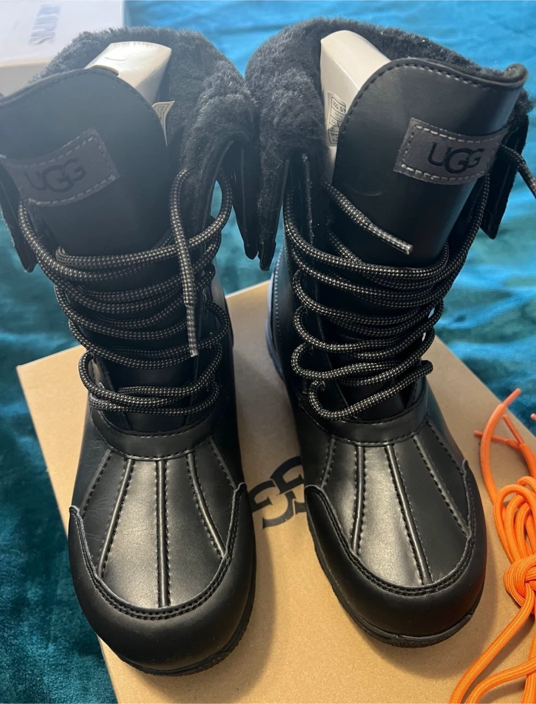 60Selling a pair of UGG Adirondack III waterproof boots in black. These boots are in great condition and come with the original box. They feature a stylish design with a lace-up front and a cozy faux fur trim. Perfect for keeping your feet warm and dry during the colder months! Used 1 time