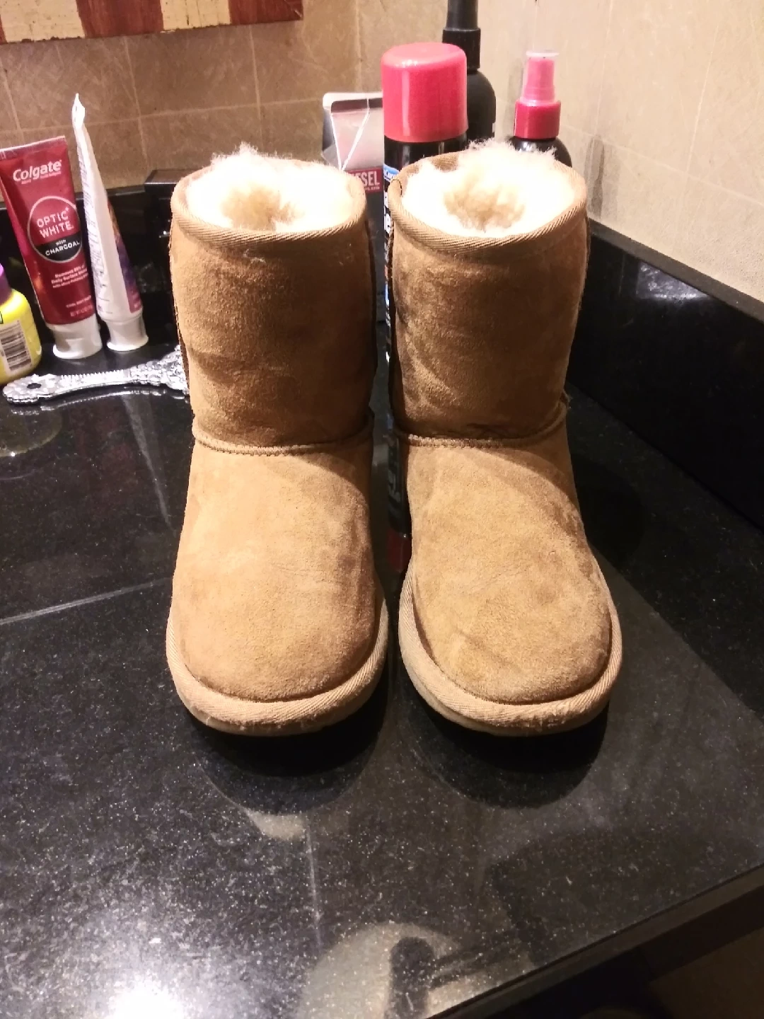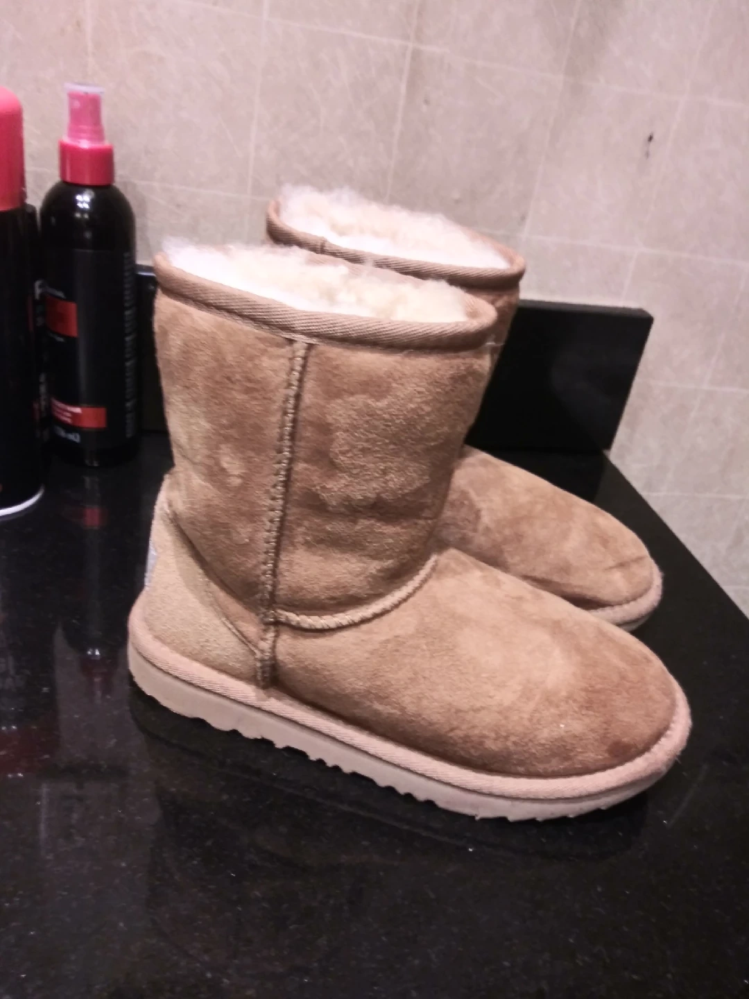 10Selling a pair of UGG Classic Short boots in a women's size 7. They are in good condition and ready for a new home! Perfect for keeping your feet warm and cozy during the colder months. They are a classic style that goes with everything