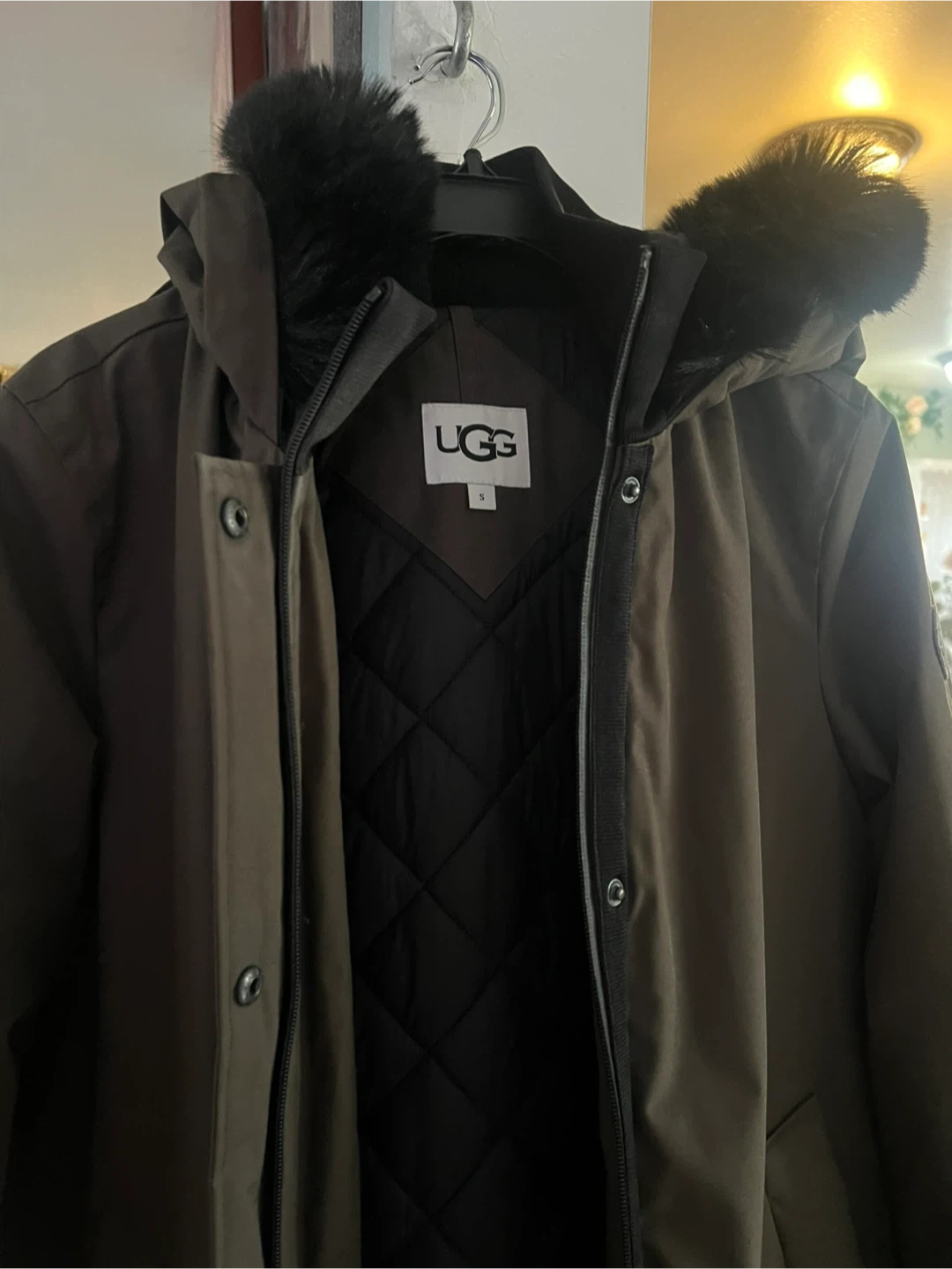 10Selling an UGG puffer jacket in olive green! It's a size small and has a cozy, stylish design perfect for colder weather