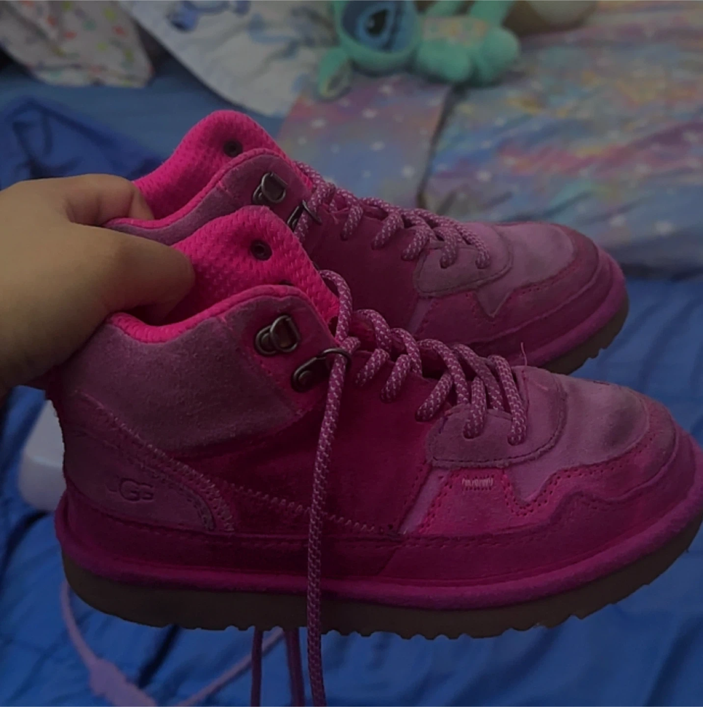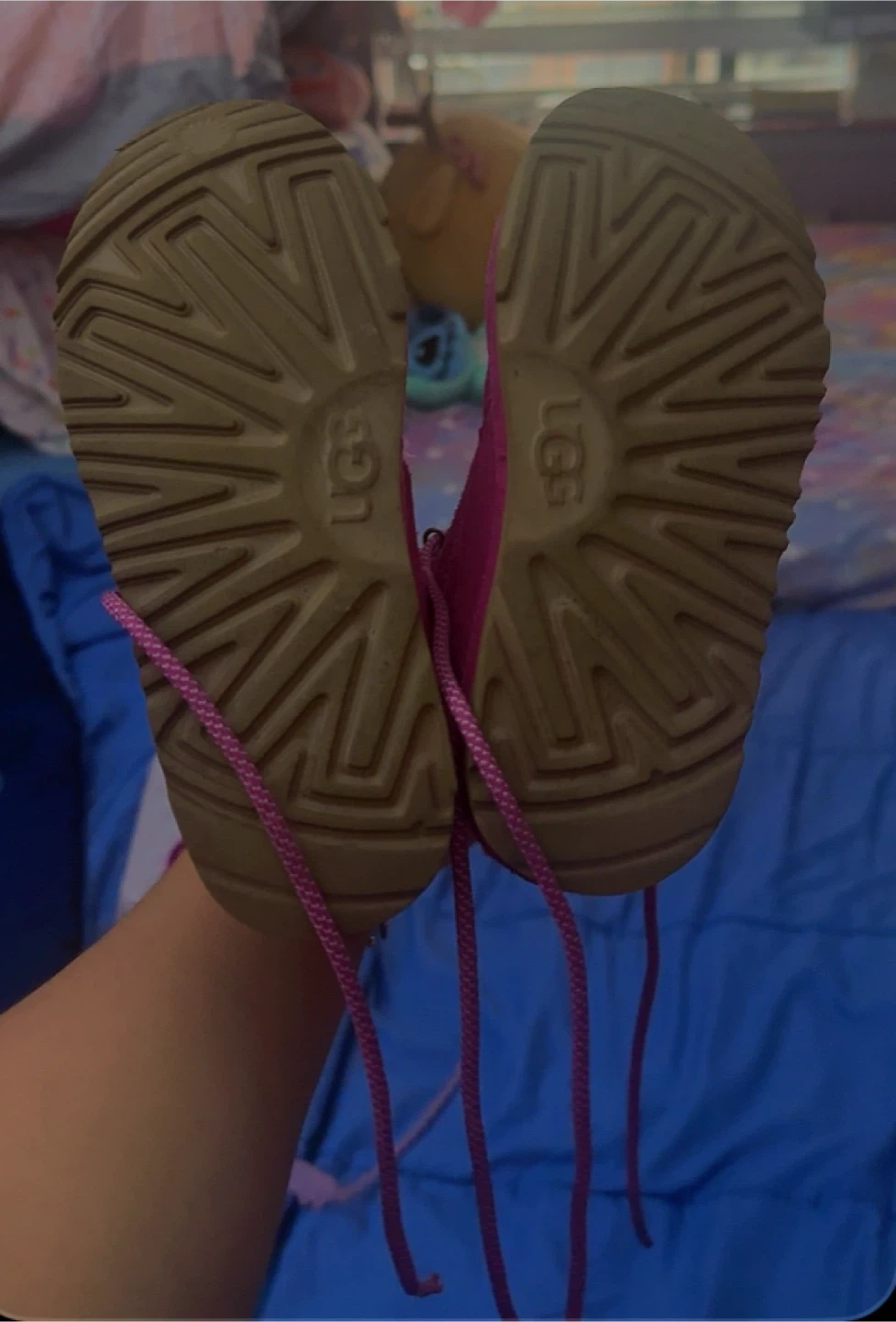 20Selling a pair of UGG ankle boots in a vibrant pink color! For Kids. These boots are perfect for adding a pop of color to your outfit. They show some signs of wear but are still in good condition for everyday use. Feel free to ask any questions! (Pick up only)