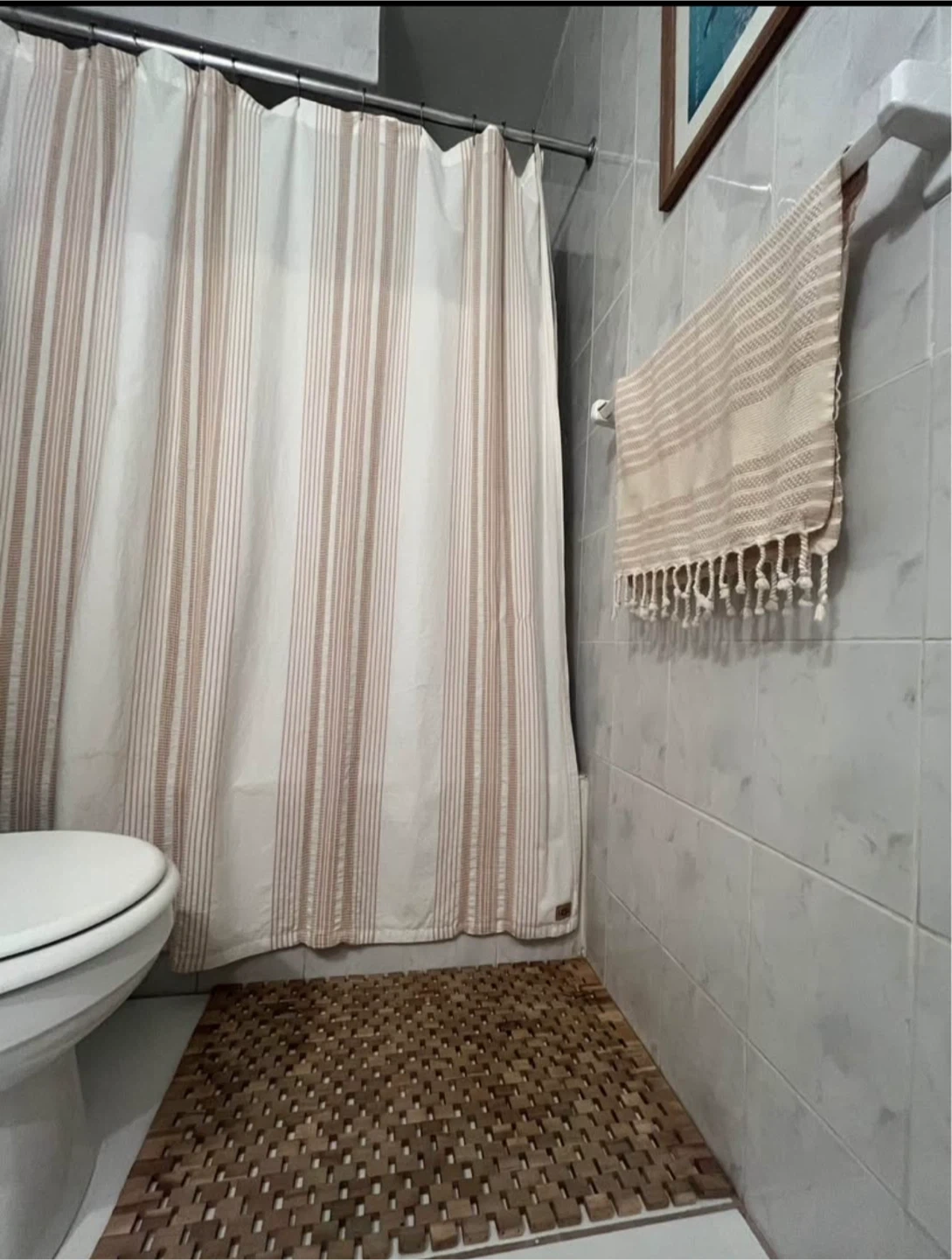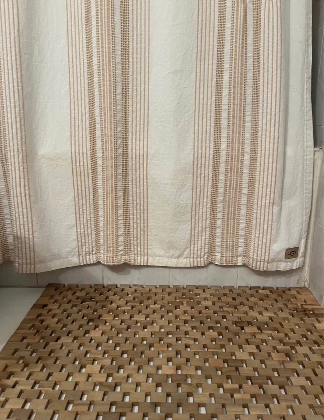 Selling an UGG shower curtain. It features a striped pattern and is in good condition. Perfect for adding a cozy touch to your bathroom!