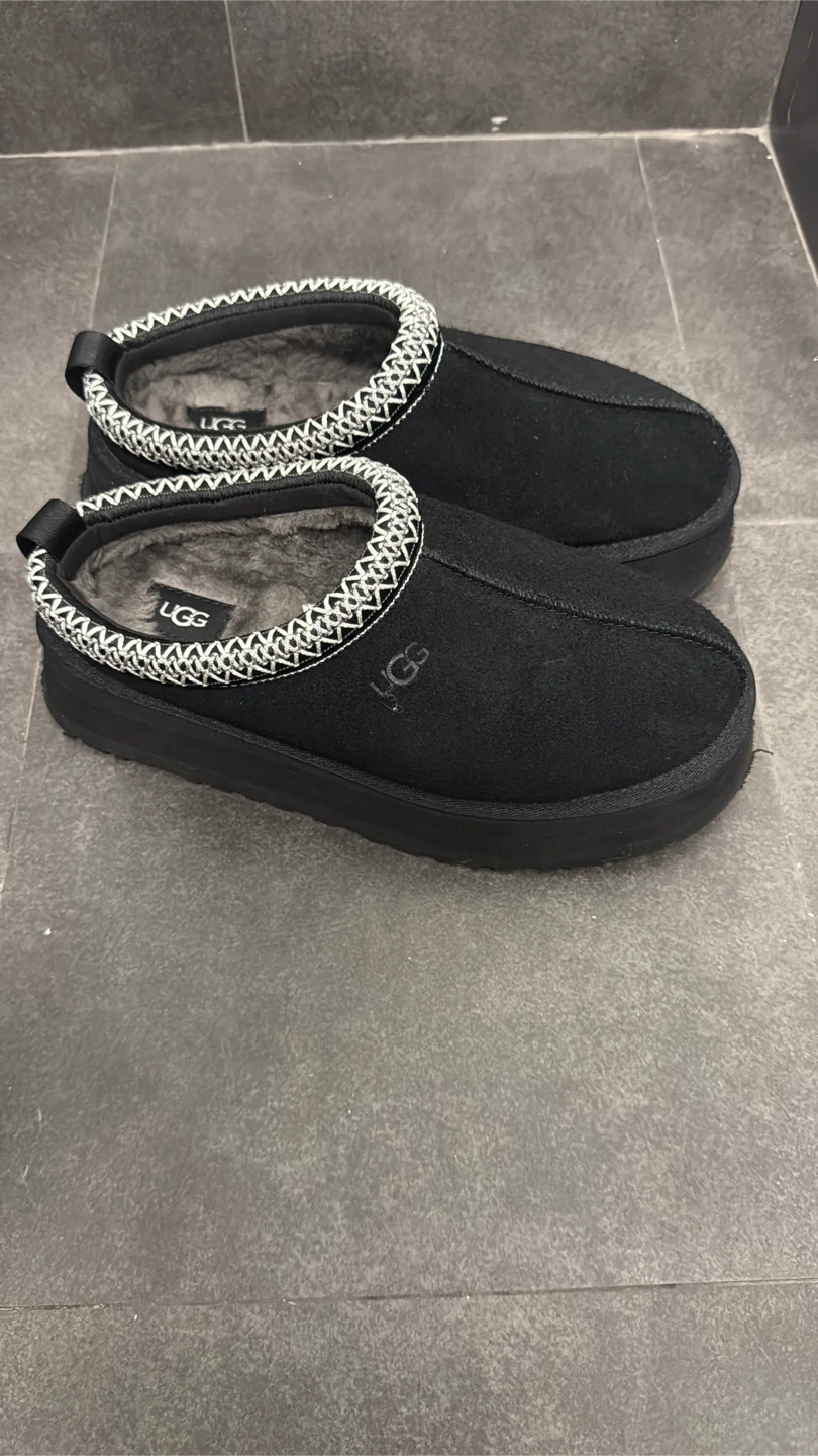 10Selling a pair of UGG Tasman slippers in black! They're in great condition and super comfy. I just used them twice. These are a women's size 7.