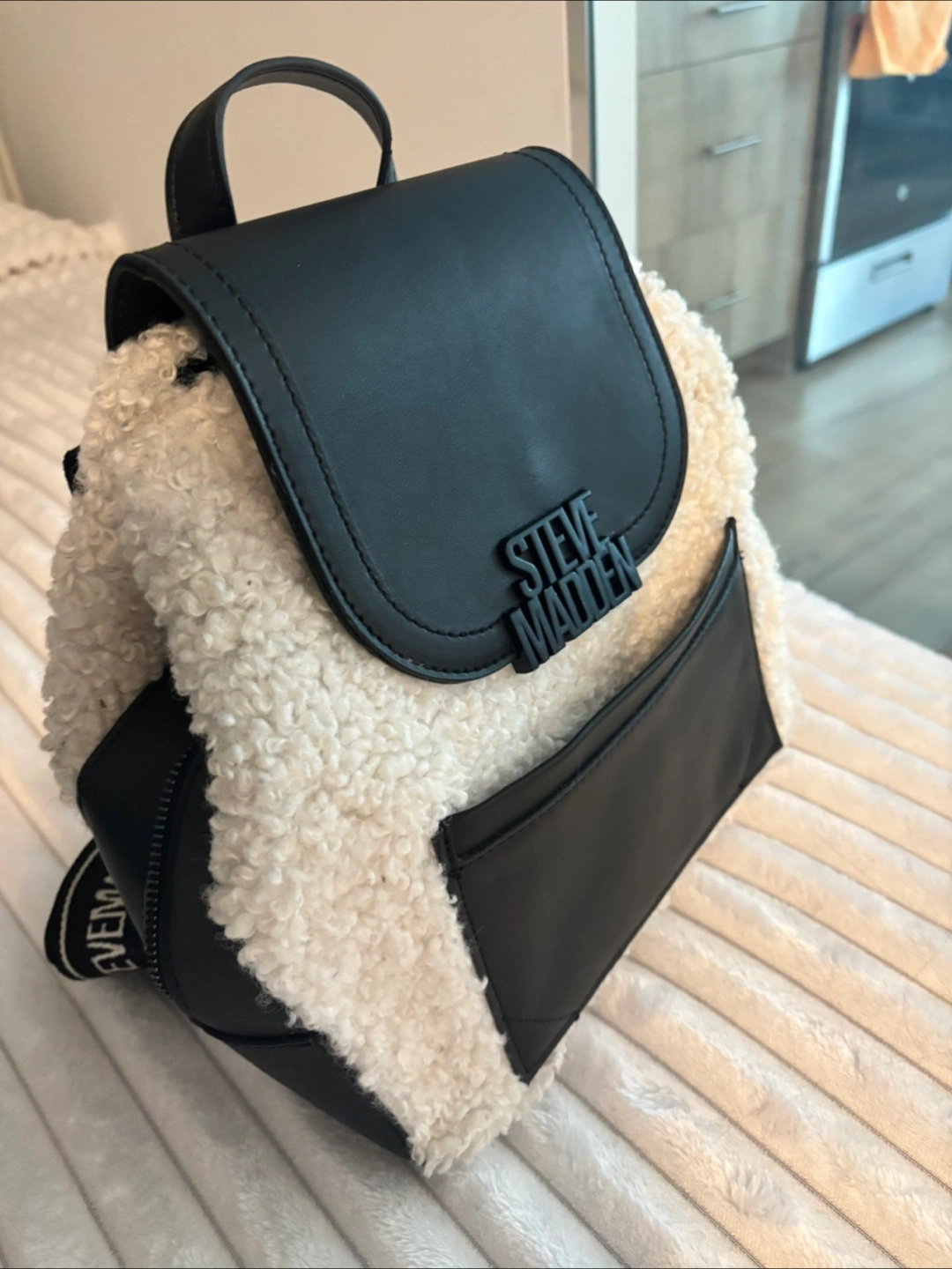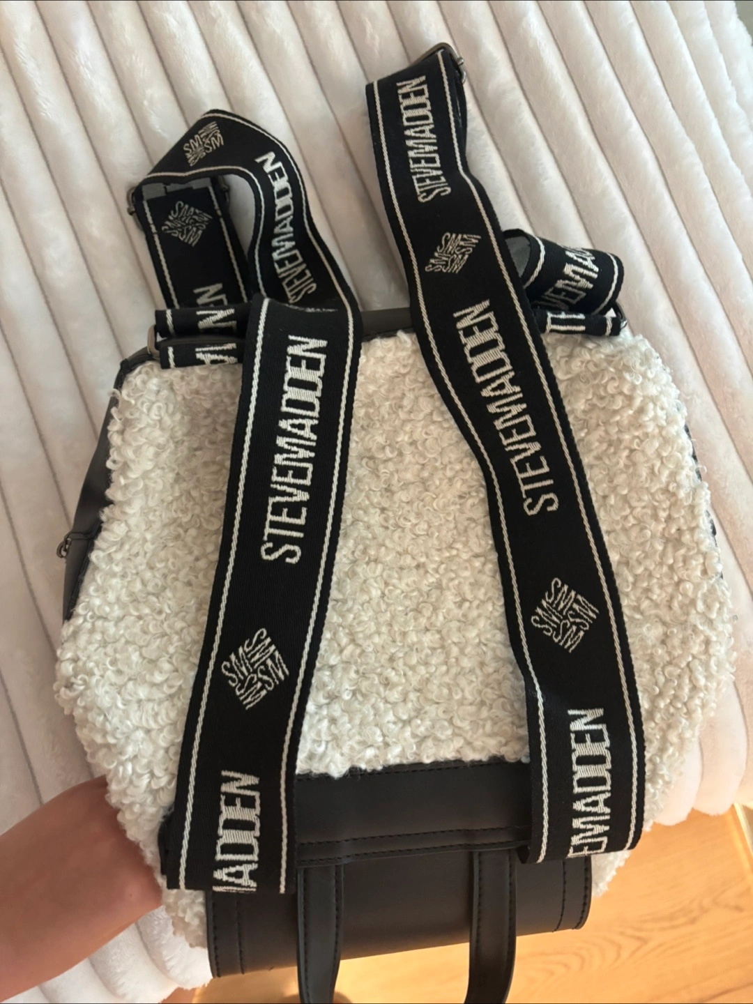 Super cute Steve Madden mini backpack! It's in great condition and features a black and white colour scheme. The straps have the Steve Madden logo printed on them. Perfect for carrying your essentials in style
