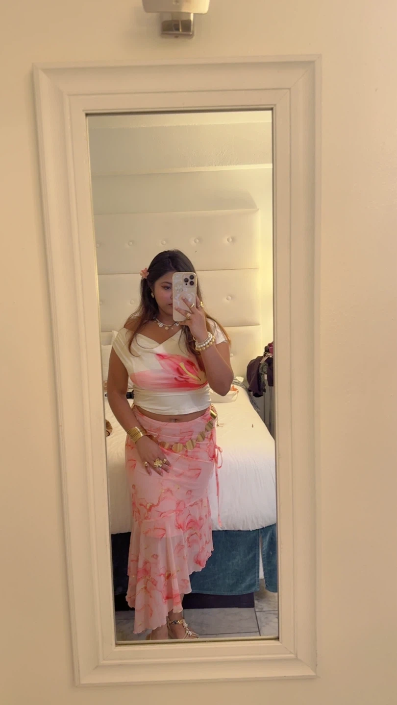 Women's Pink Floral Print Maxi Skirt and top