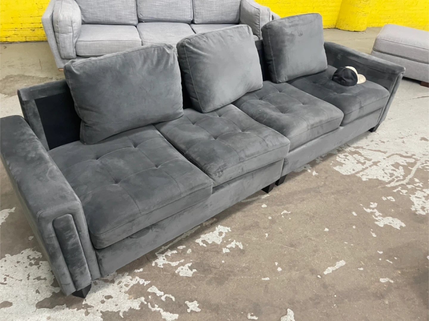 Gray Velvet Tufted Sofa