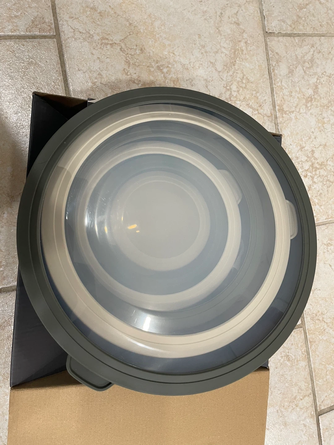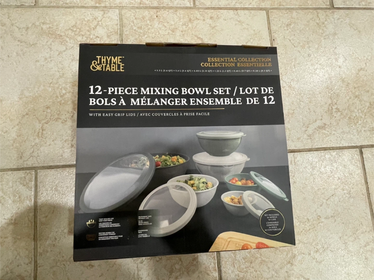 This is a 12-piece mixing bowl set from the Essential Collection. It includes bowls of various sizes, all with easy grip lids. Bowls are dishwasher and microwave safe. Brand new Pickup muirland crescent Brampton