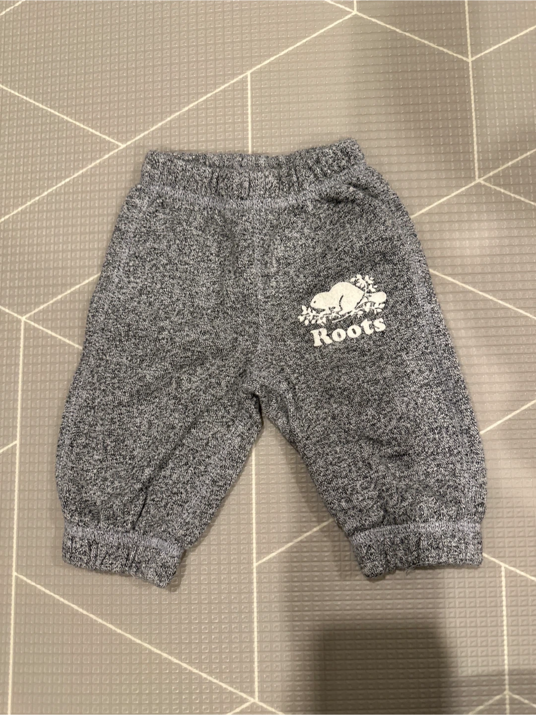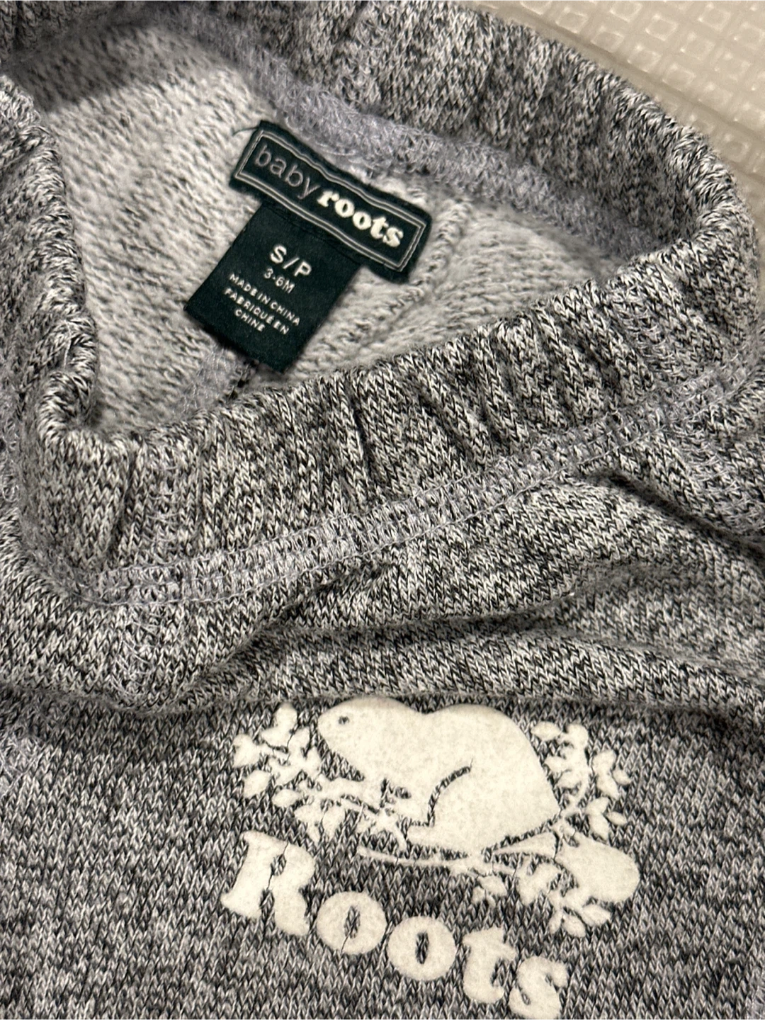 Cute baby Roots organic original pants in a salt & pepper! Size 3-6 months and in great condition. Perfect for keeping your little one comfy and stylish!