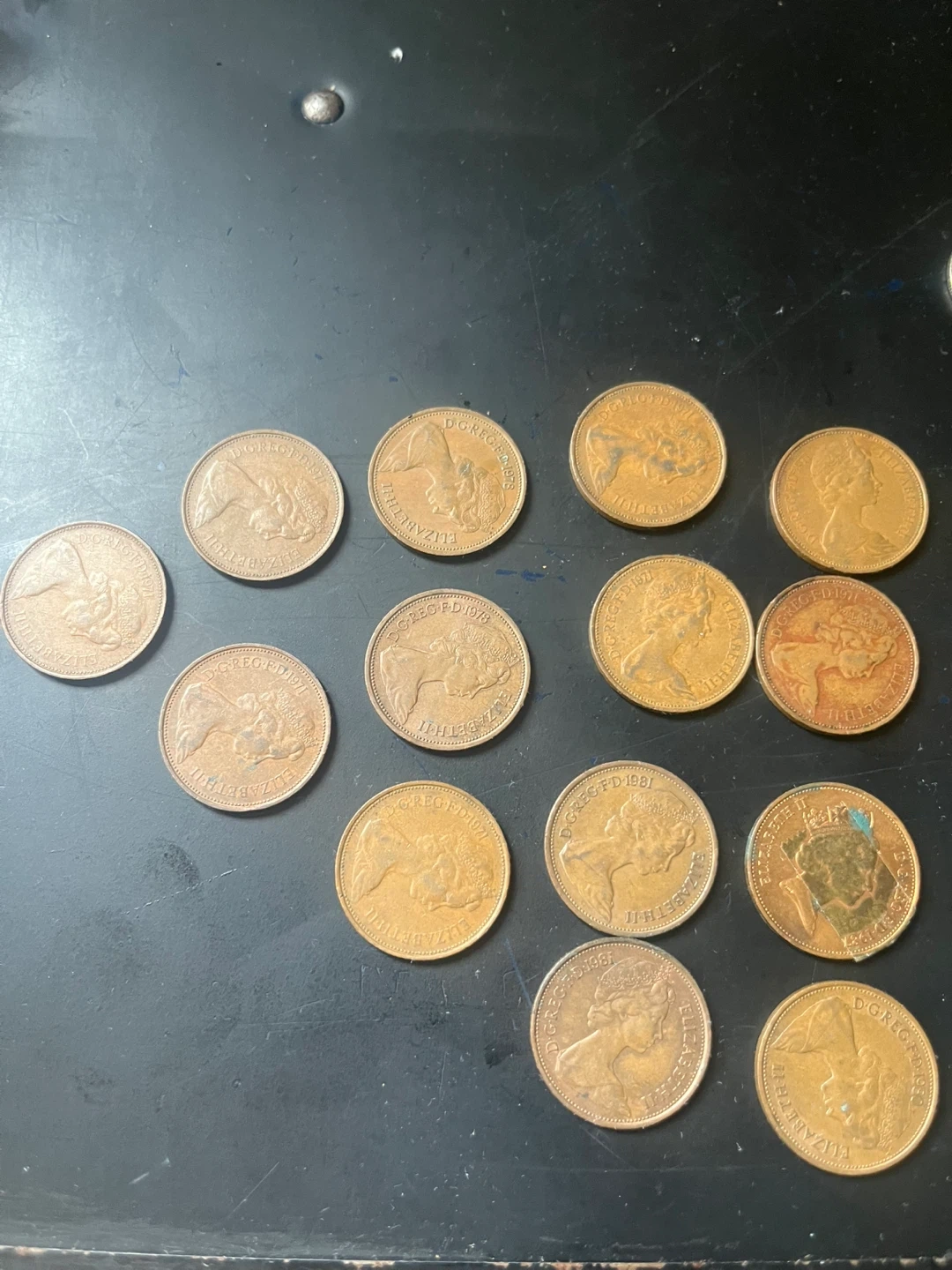 13 UK 2 Pence Coins - Various Years 1970s 1980s