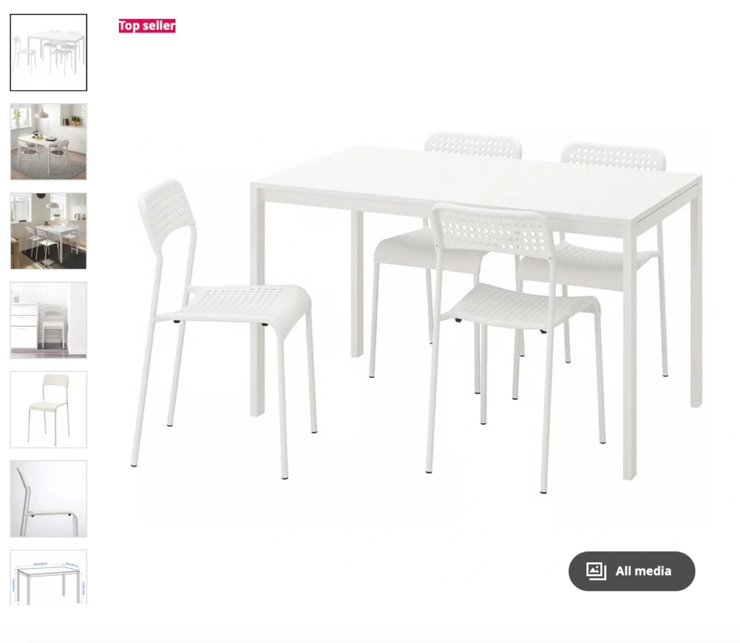 IKEA White Dining Table Set with 4 Chairs
