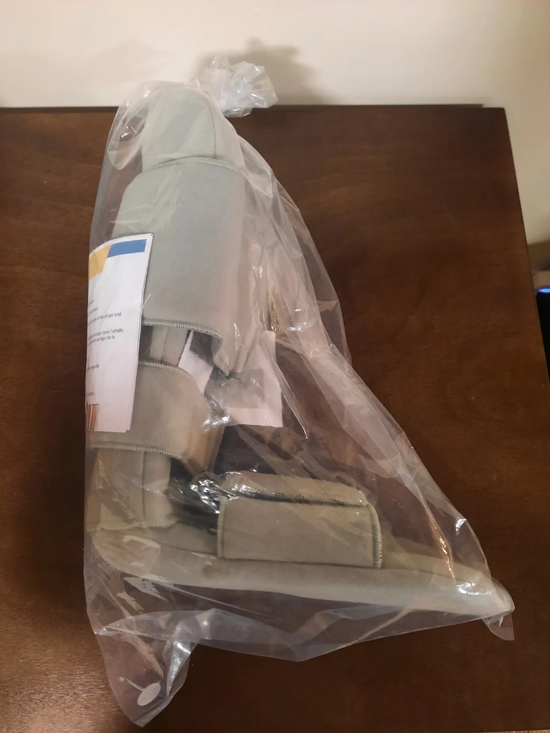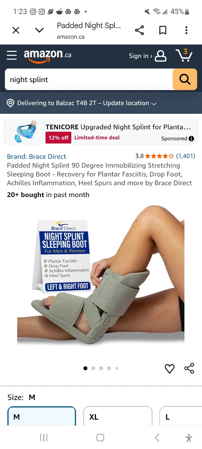This is a Brace Direct padded night splint sleeping boot. It's designed for plantar fasciitis, drop foot, and Achilles inflammation. Size is LARGE