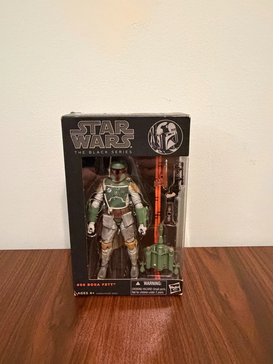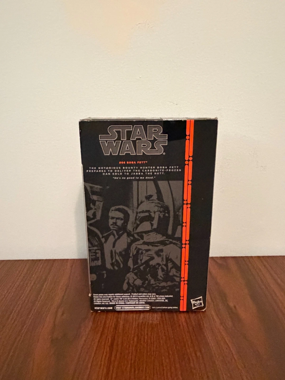 This is the Star Wars Black Series 6-inch action figure of Boba Fett from The Empire Strikes Back. It's the 2013 orange wave release. Brand: Hasbro. Model: Star Wars The Black Series Boba Fett. Item Height: 6 inches. Country of Origin: China.