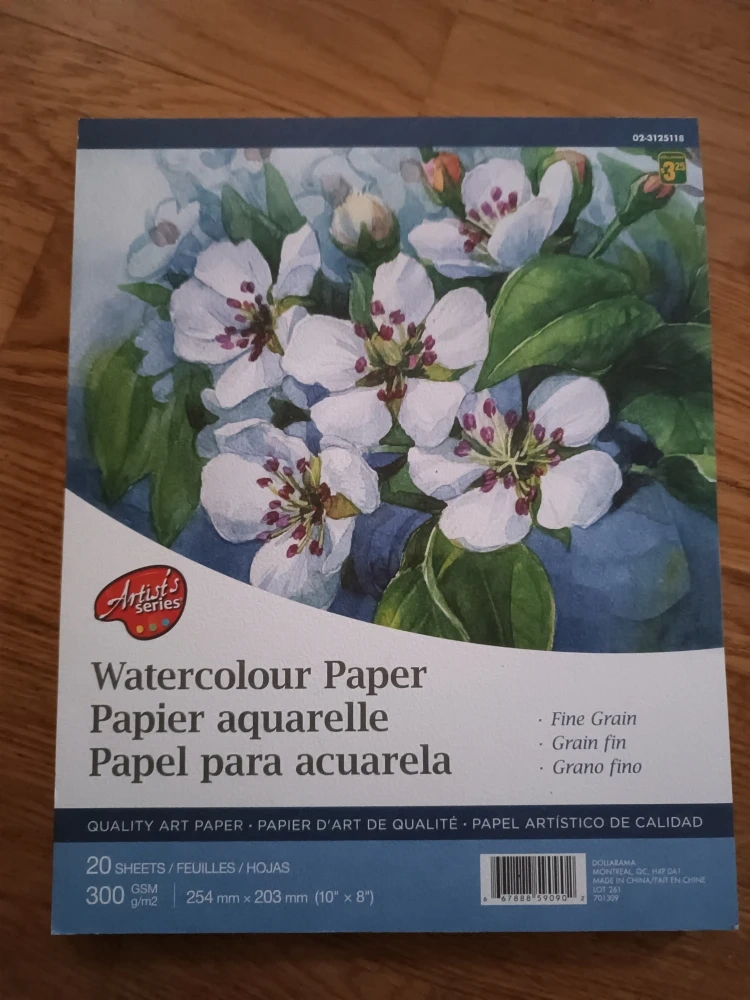 Selling a pad of Artist's Series watercolour paper. It's got 20 sheets of quality art paper with a fine grain. The paper is 300 gsm and the pad measures 254 mm x 203 mm (10" x 8").