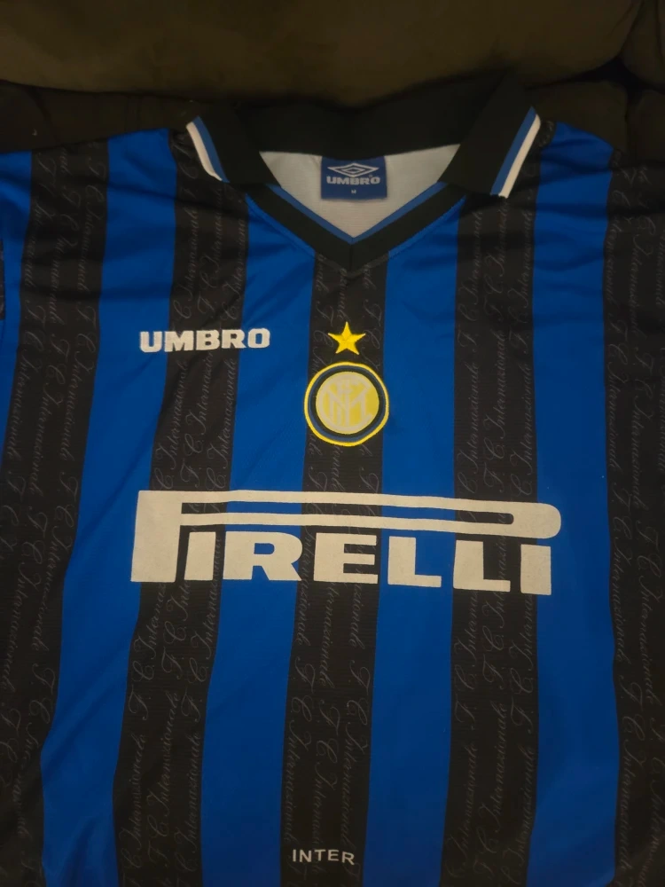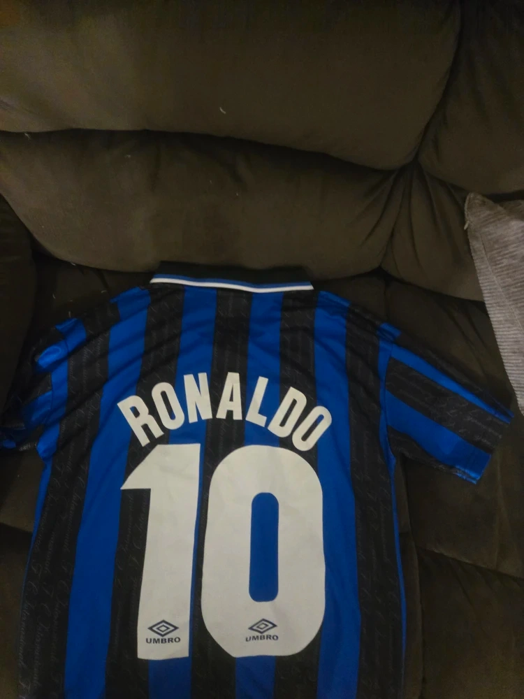 60Selling an Umbro Inter Milan jersey with Ronaldo's name and number 10 on the back! The jersey features the Pirelli sponsor logo on the front and the Inter Milan club crest. It's a cool piece for any football fan or collector