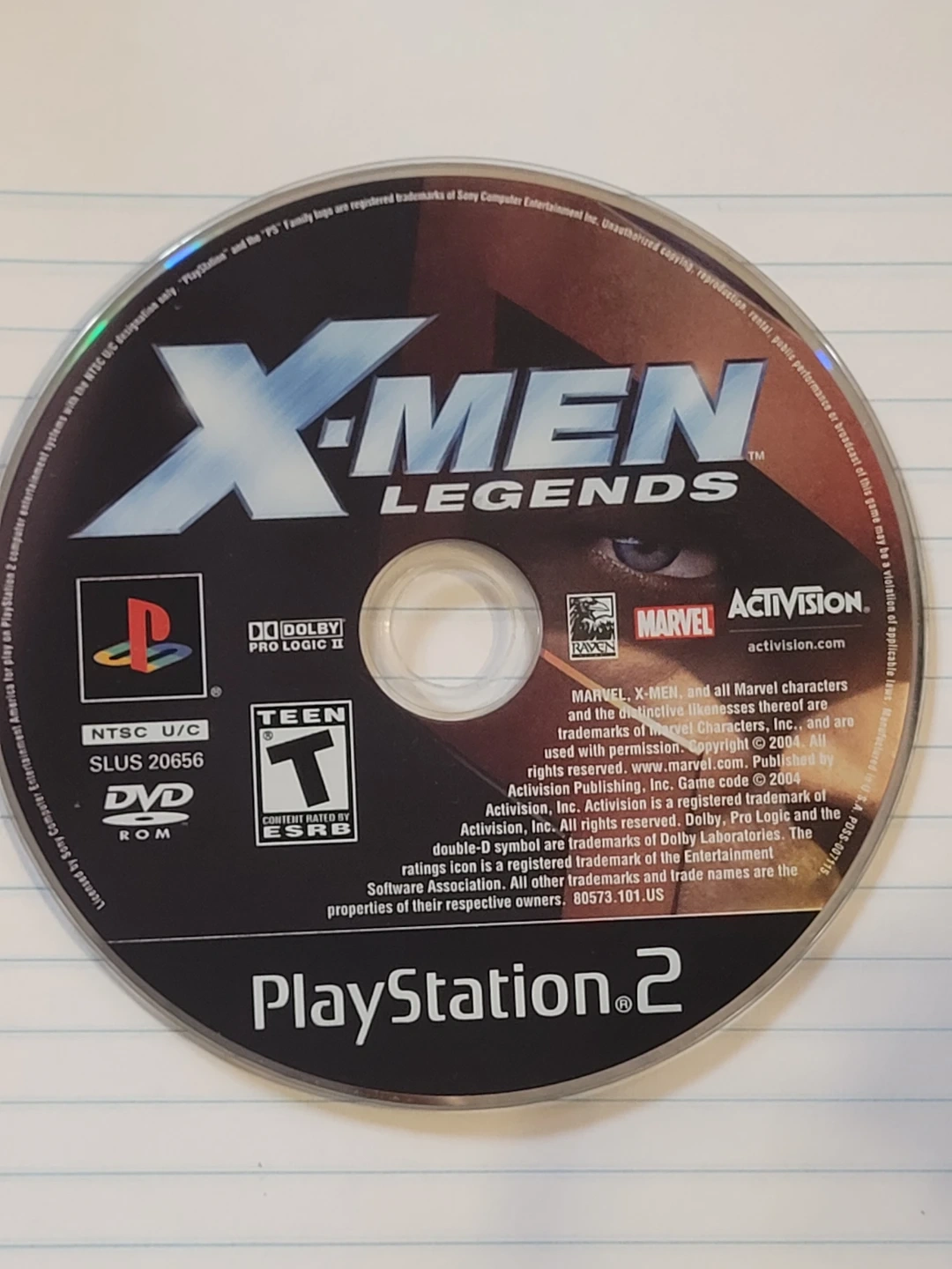 This is the disc for X-Men Legends for the PlayStation 2. It's a DVD-ROM game with a Teen ESRB rating. Game code is SLUS 20656.