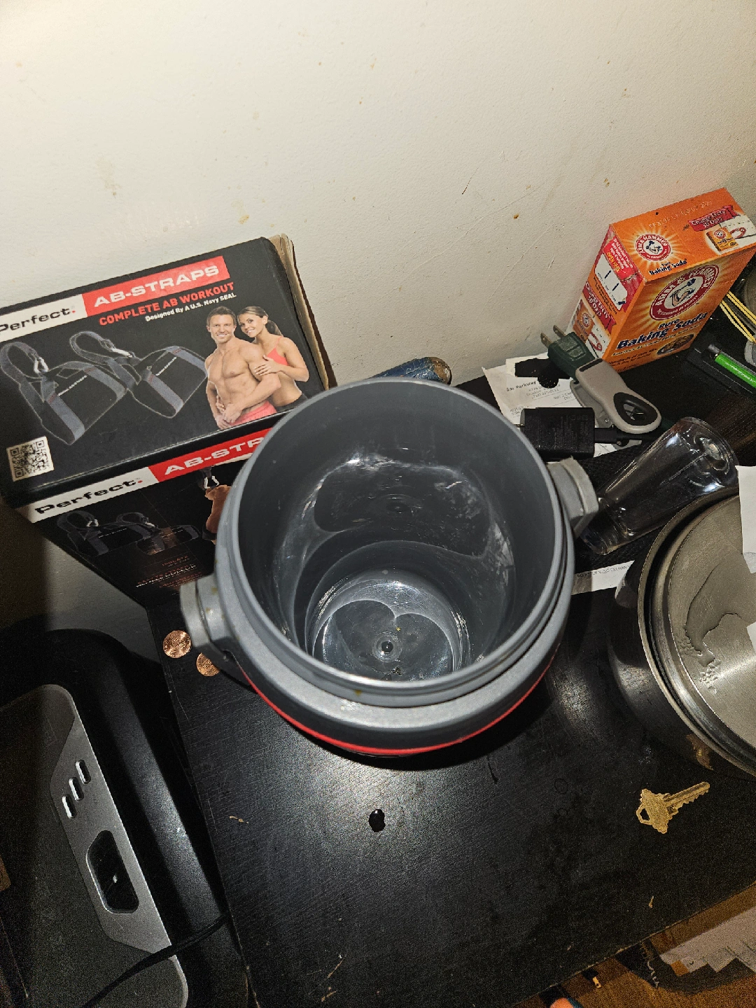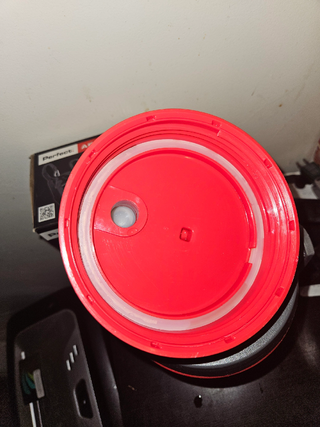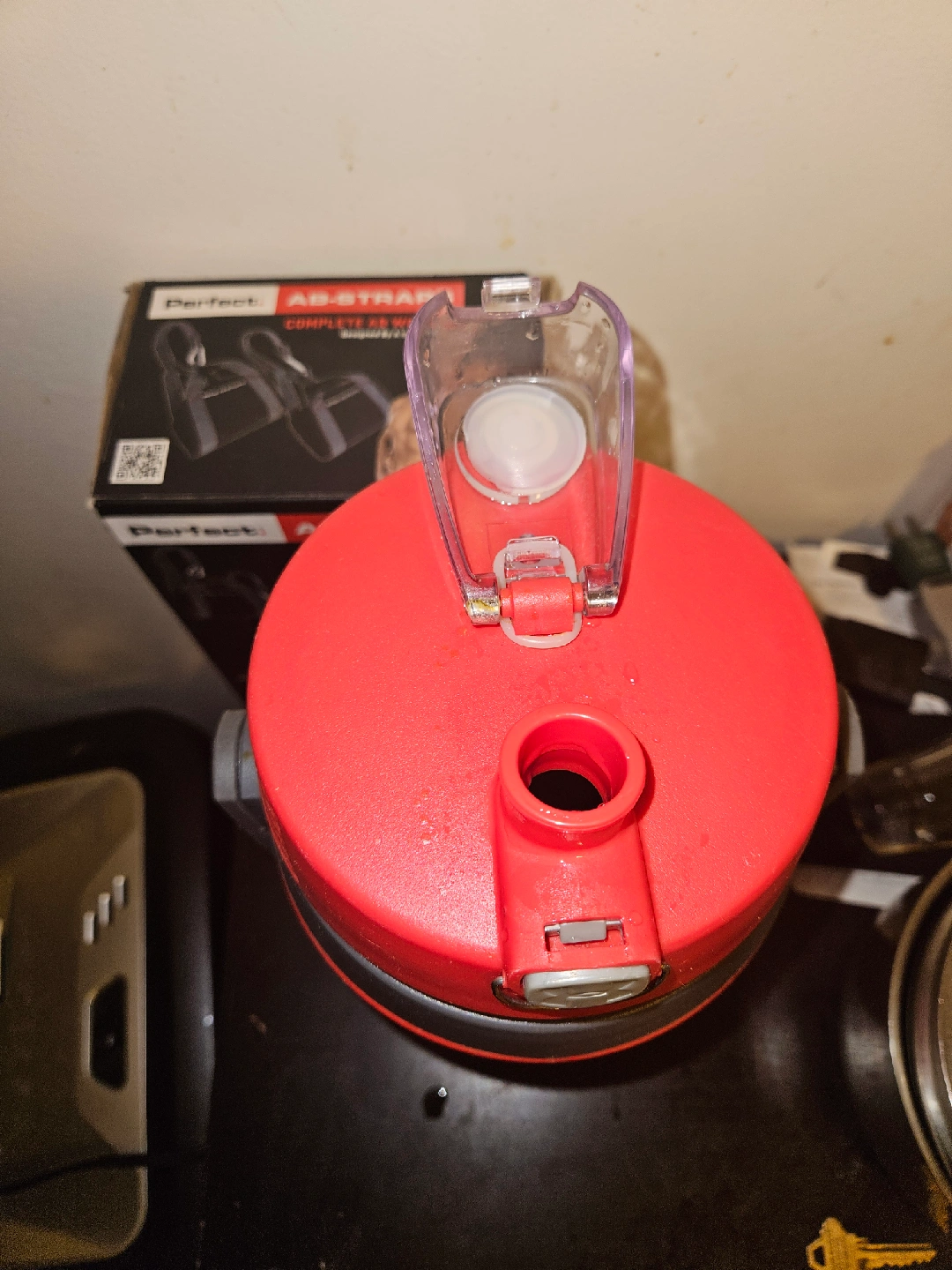 This is a red Under Armour foam insulated bottle. It holds 64 oz/1.9 L and keeps cold for 12 hours. It has a push-button lid with locking ring and integrated fence hooks. Great for staying hydrated!