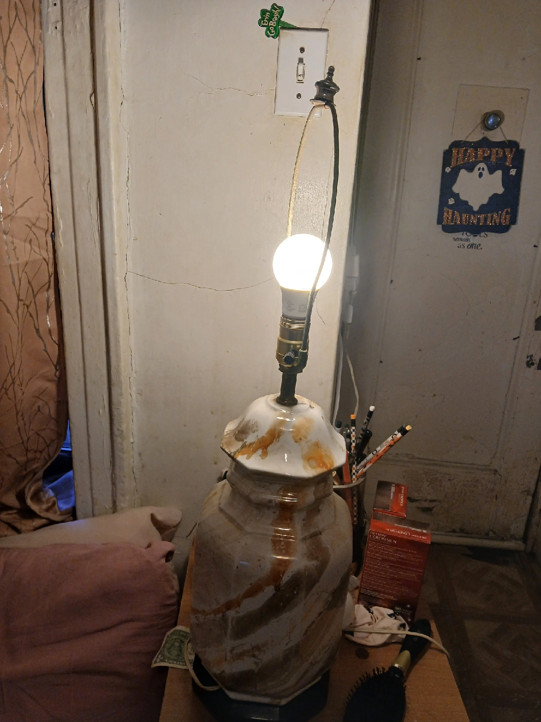 28Selling a unique ceramic table lamp! It has a distinct design and would be a great addition to any room. It comes with a lampshade