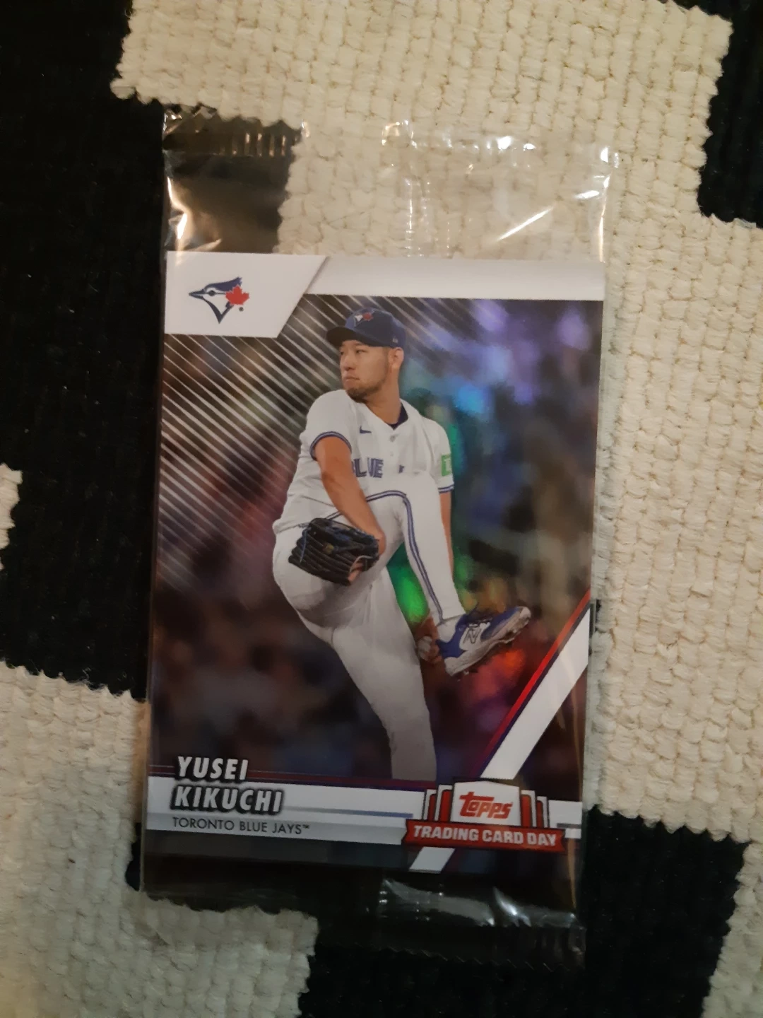 Selling a Yusei Kikuchi Topps Trading Card Day card. It's in new in package condition and still sealed in its original packaging! Comes with 5 other surprise cards.