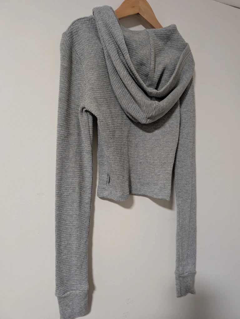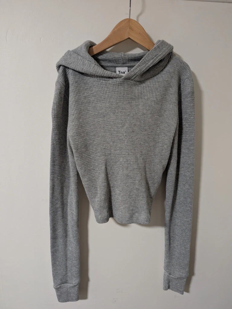 Tna Grey Waffle Knit Cropped Hoodie