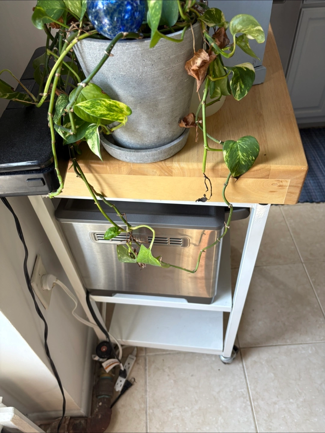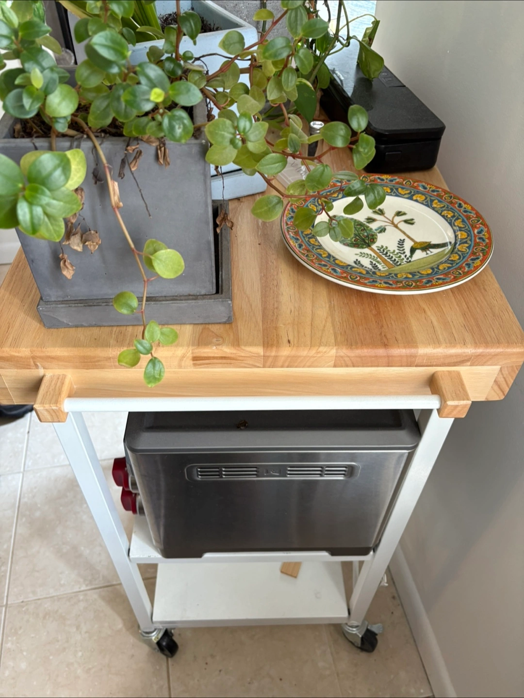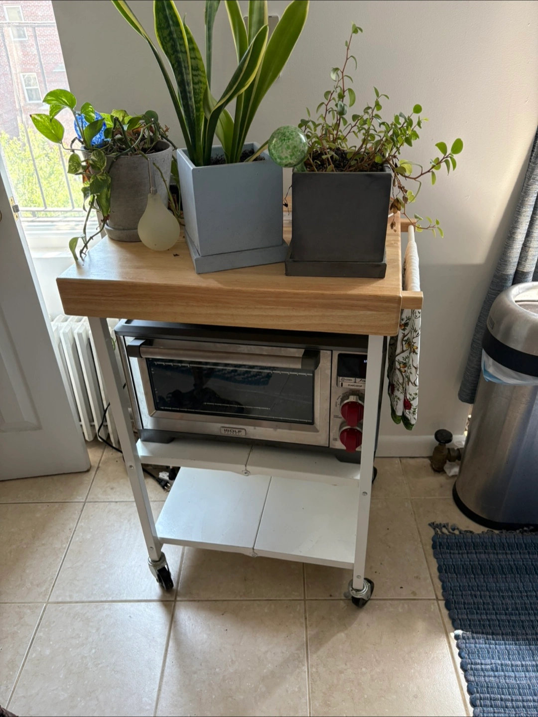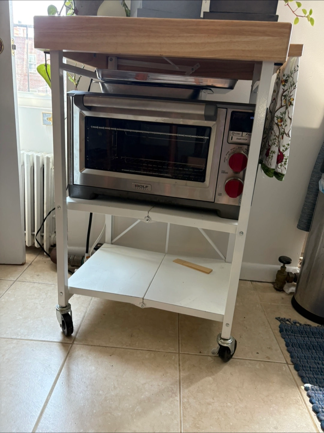Rolling Kitchen Cart with butcher block top, collapsible