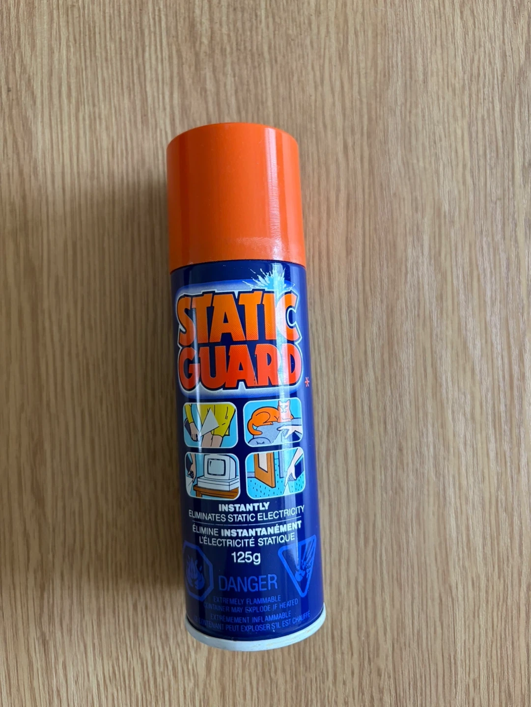 Static Guard spray eliminates static electricity instantly. Suitable for fabric and upholstery. Container is 125g and is lightly used.