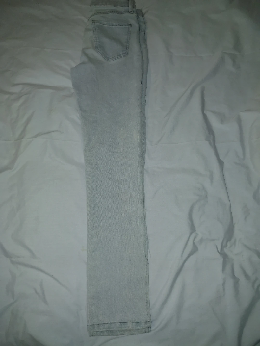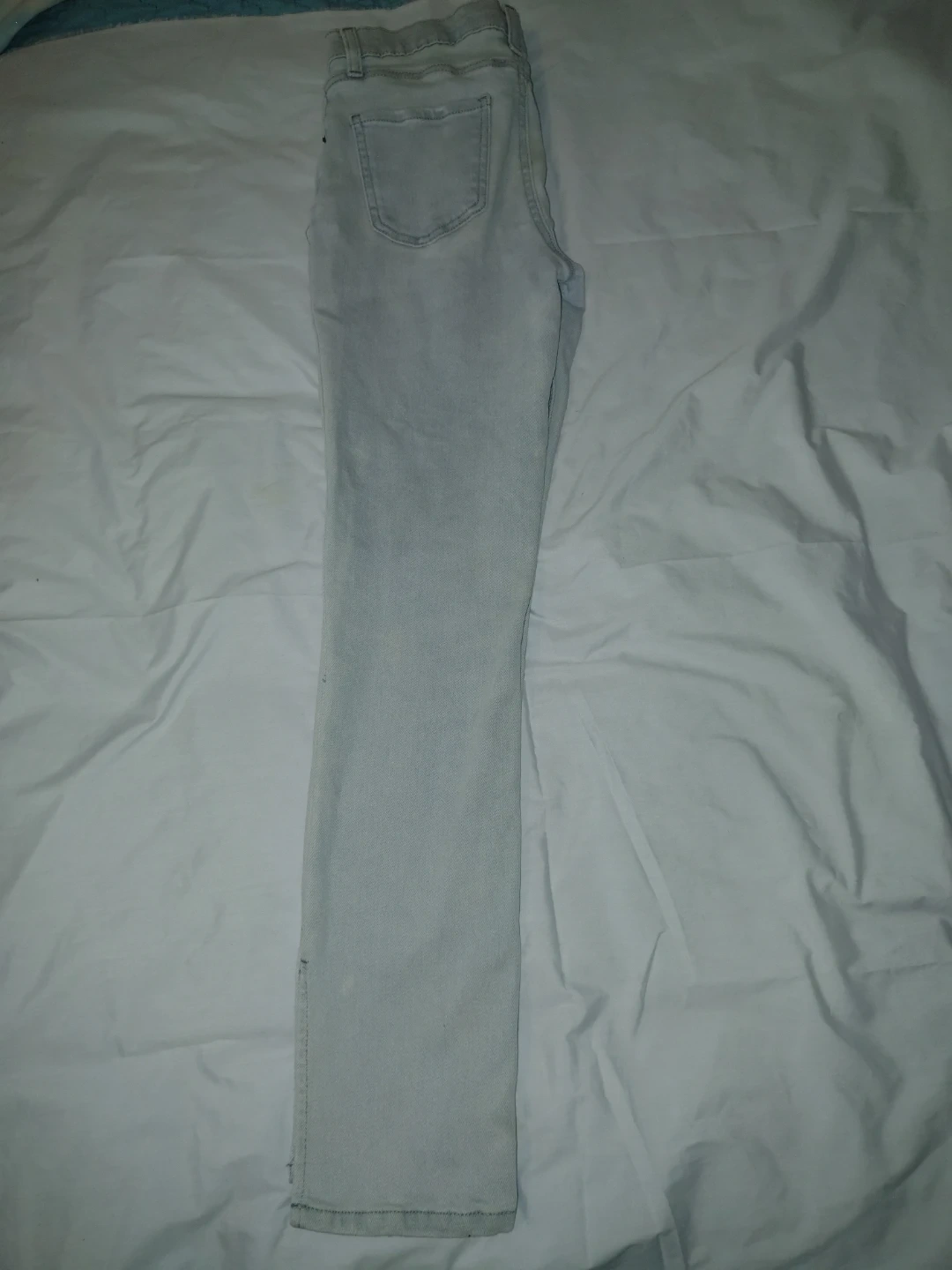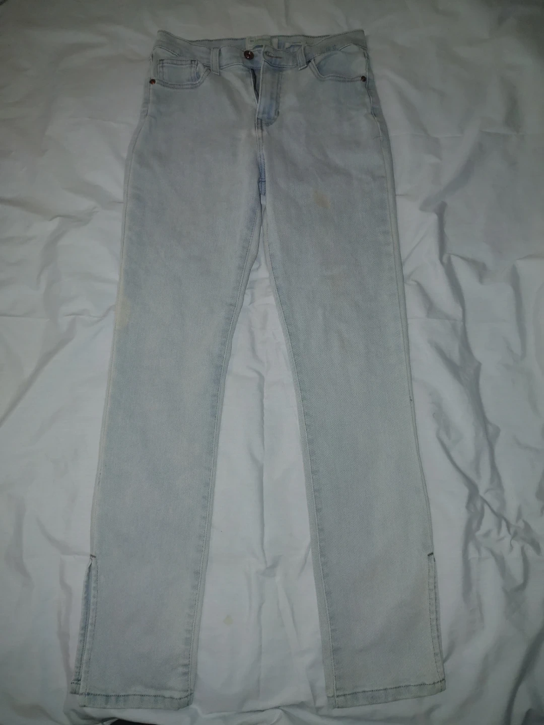 Light wash denim jeans. Features a slim fit and split ankles. Made from a comfortable cotton blend.