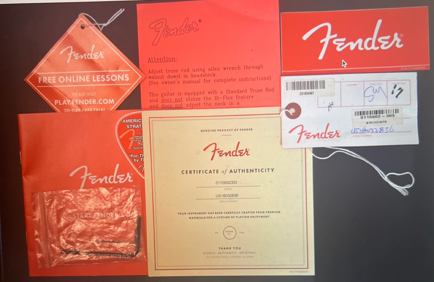 * Original Fender Certificate of Authenticity and Tools (Allen Wrenches)
