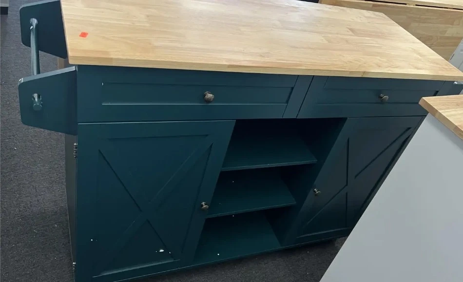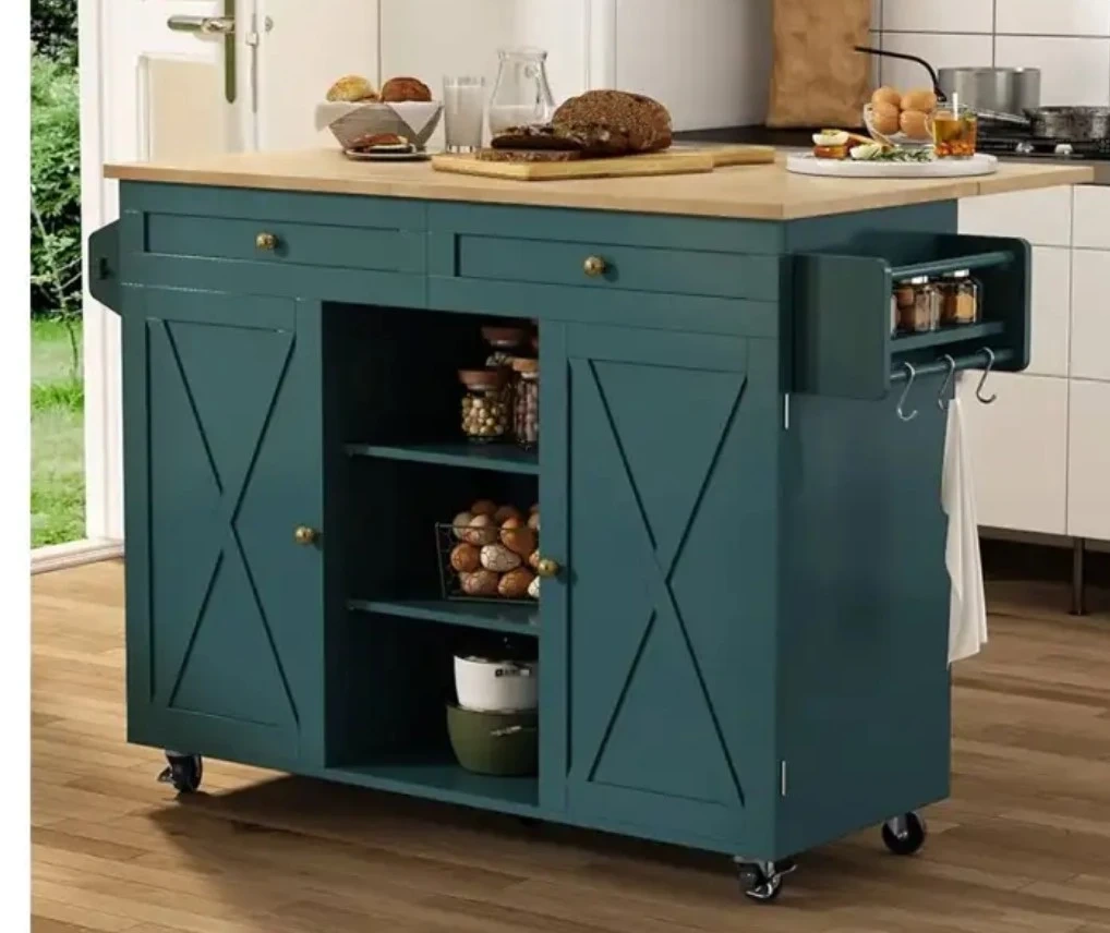 Teal Kitchen Island Cart with Wood Top