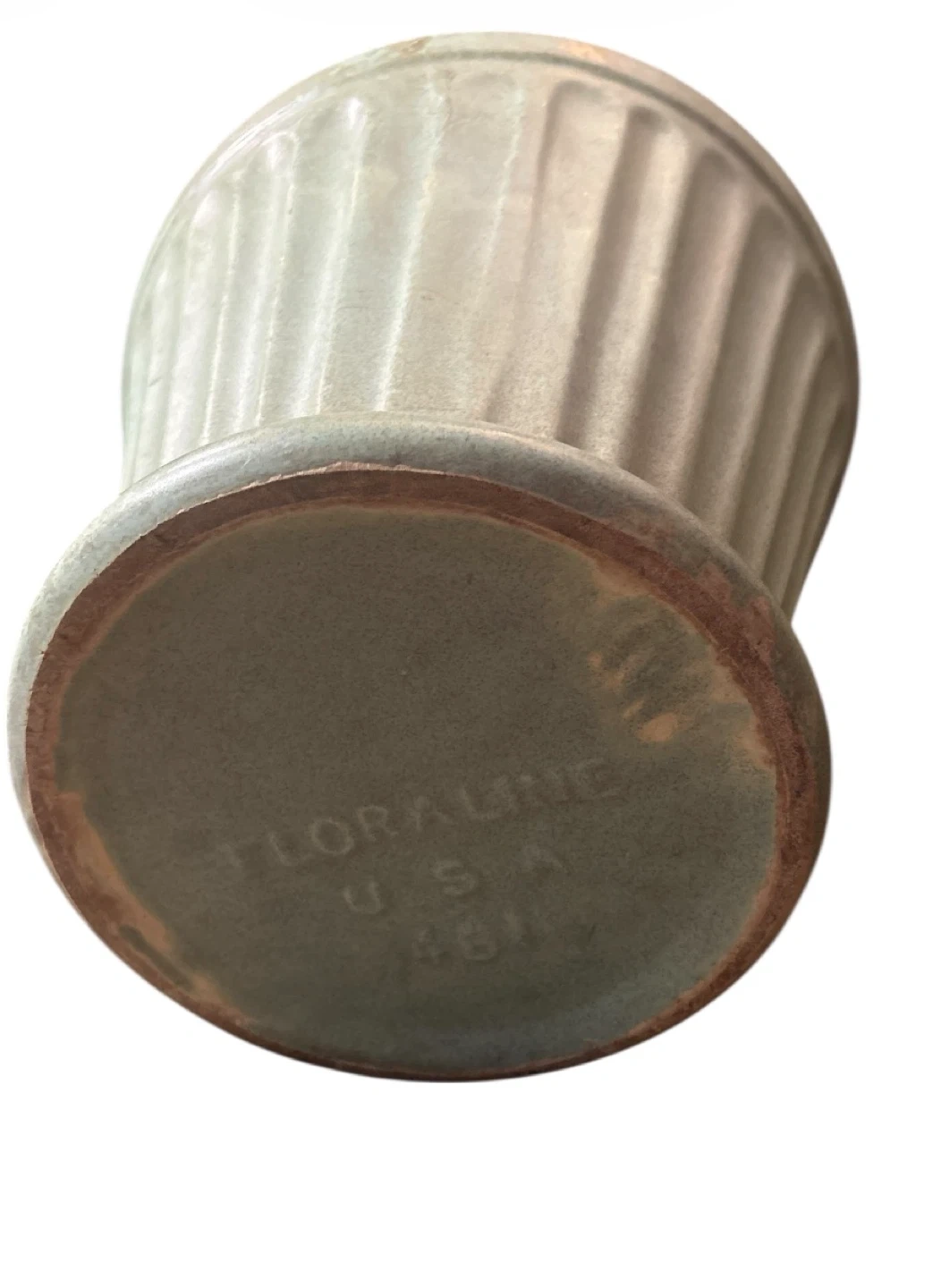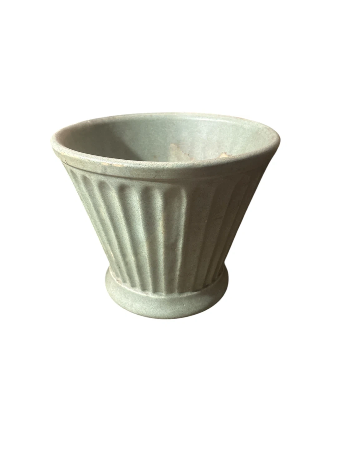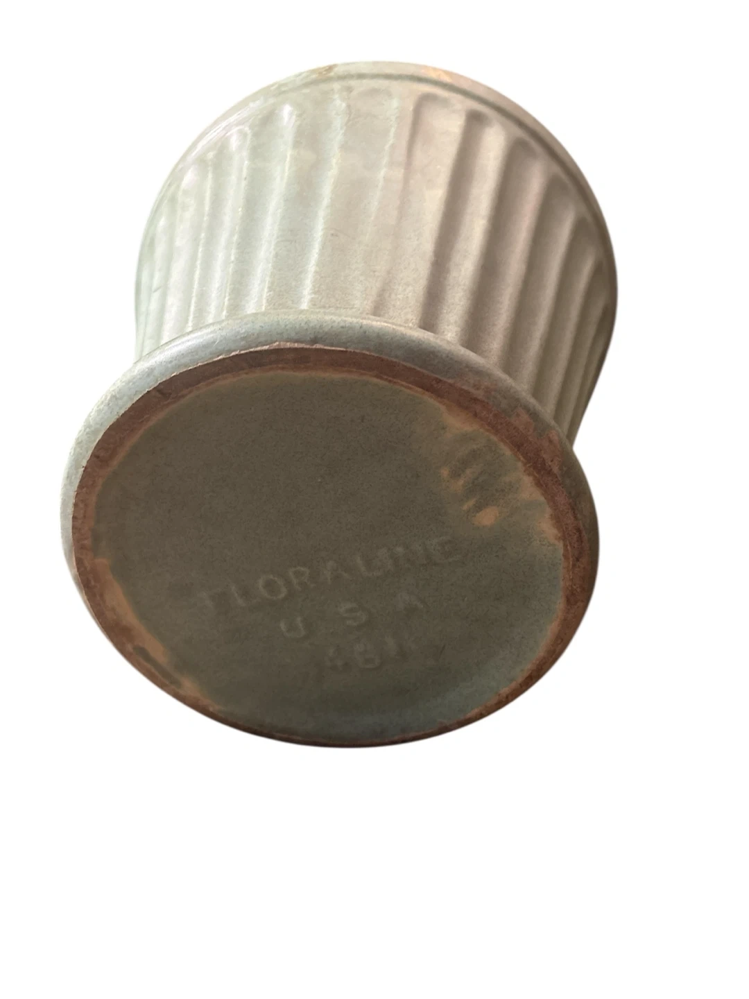 This is a vintage Floraline planter pot made in the USA. It's a mid size with a fluted design. Ceramic material.