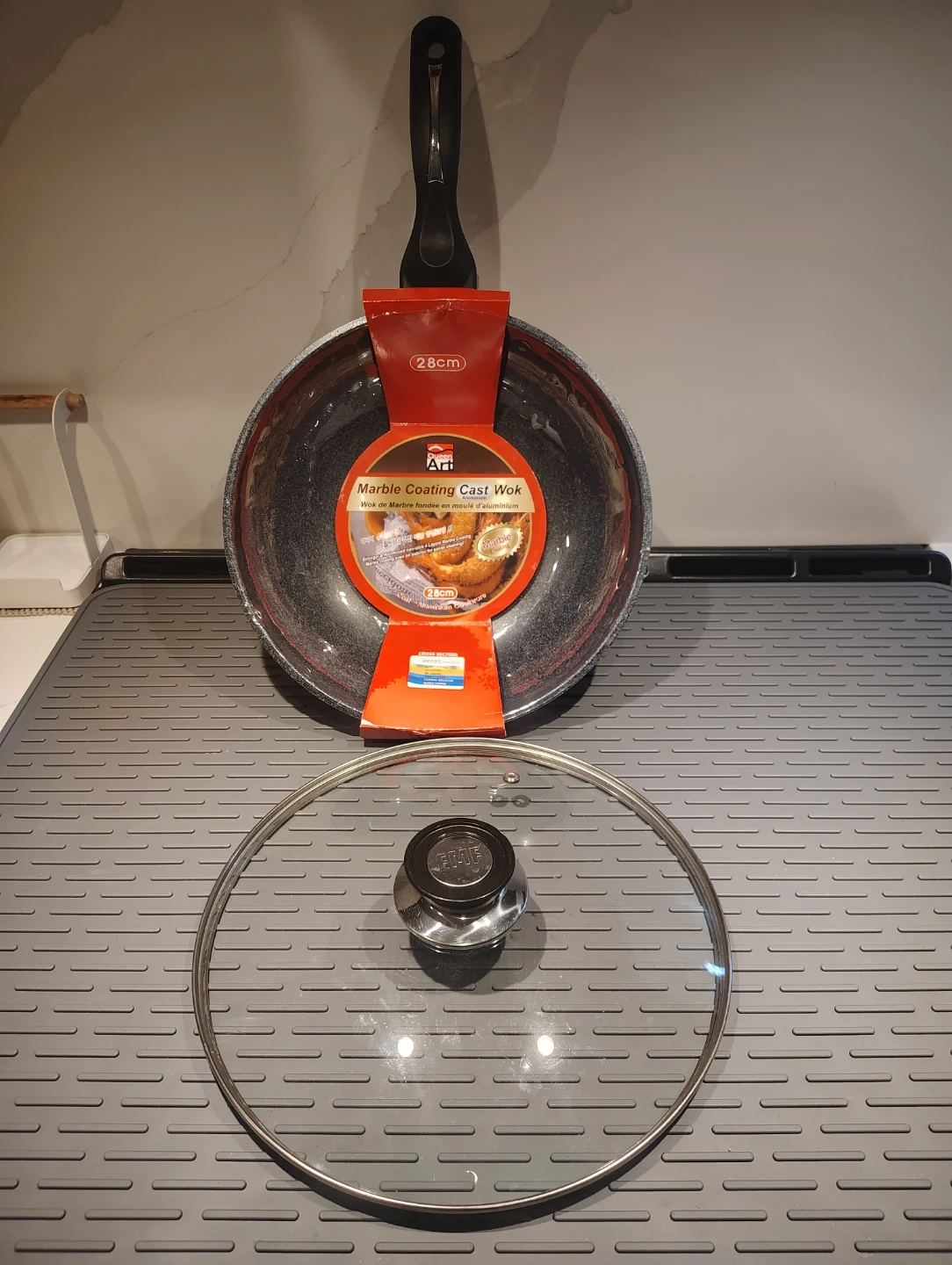 Marble Coating Cast Aluminum Wok with Glass Lid