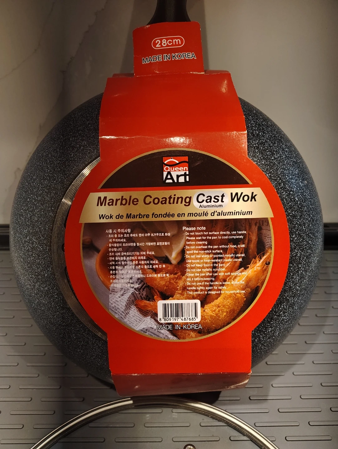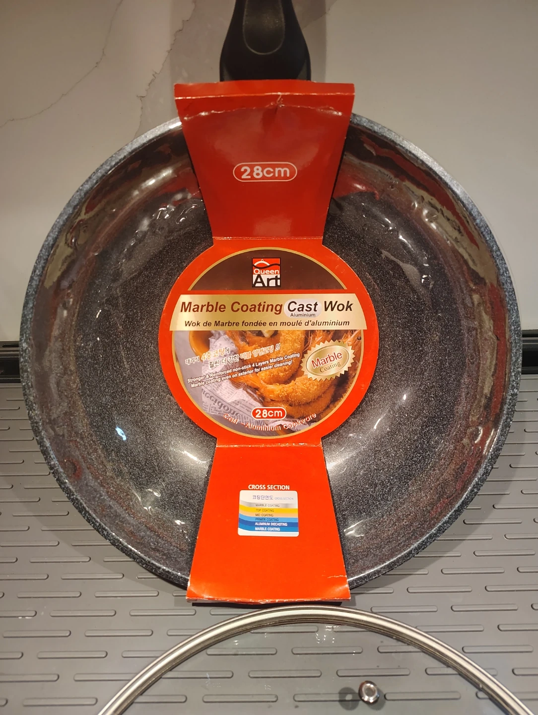 RARELY USED 28cm Marble Coating Cast Aluminum Wok w Lid Korea