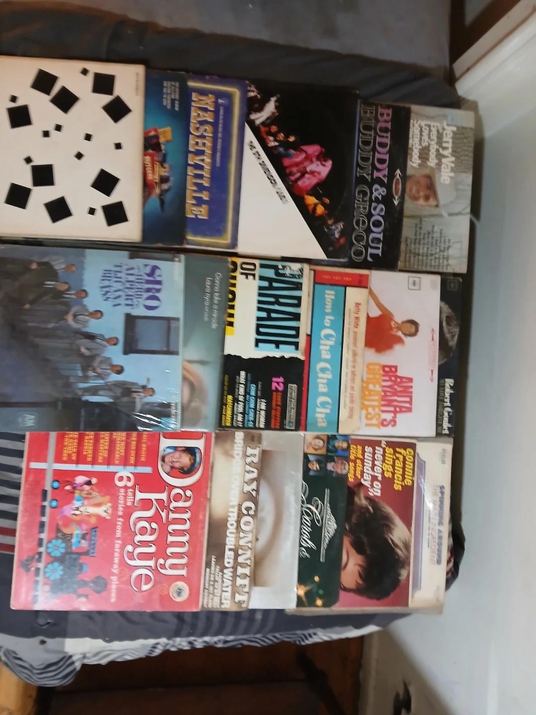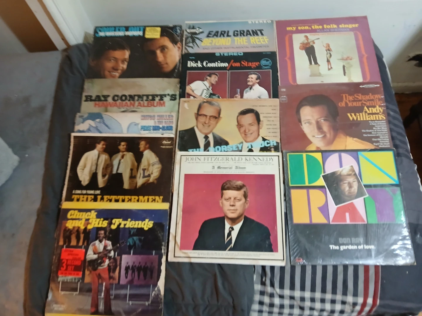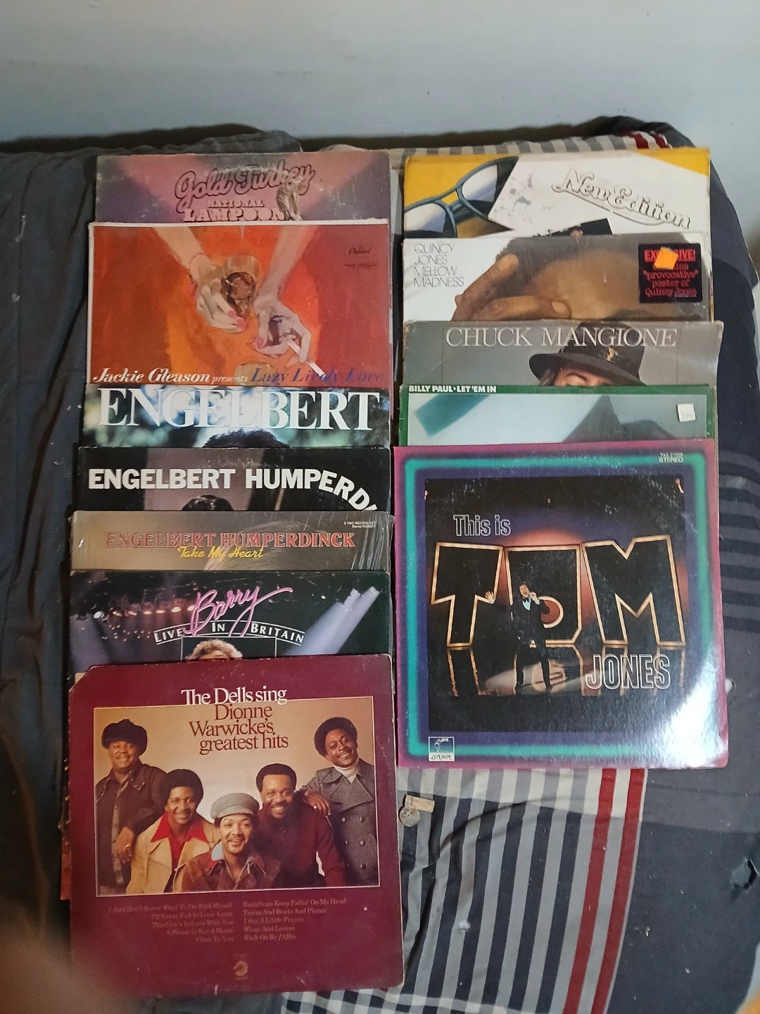 A collection of vintage vinyl records featuring various artists and genres. Includes jazz, pop, and country music from different eras. These records are a great addition for any music enthusiast's collection.