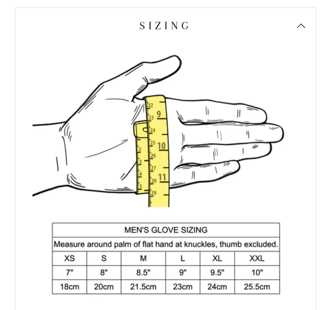 These gloves are a size M. The last photo is a sizing chart.