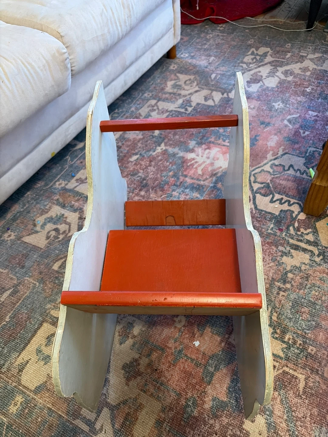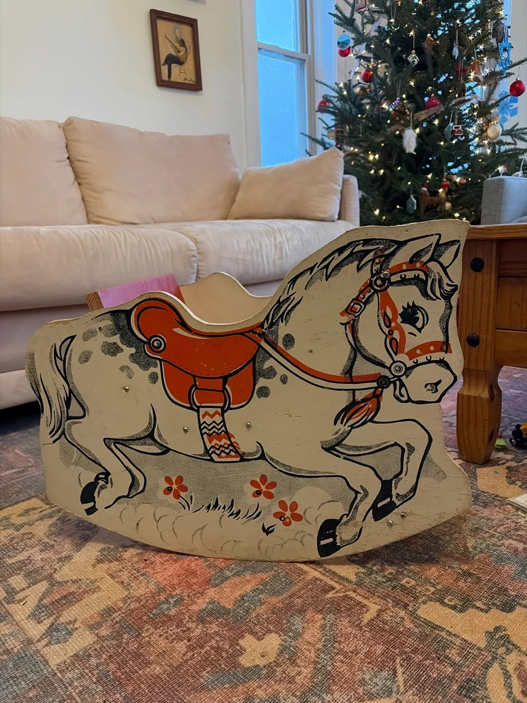 Selling an adorable vintage rocking horse! It's in good condition and ready for a new home as our kiddo has outgrown it. The rocking horse is white with a red saddle and black accents. It would be a great addition to any child's room or playroom( or a great prop as a period piece in a theater production for you artsy folks out there).